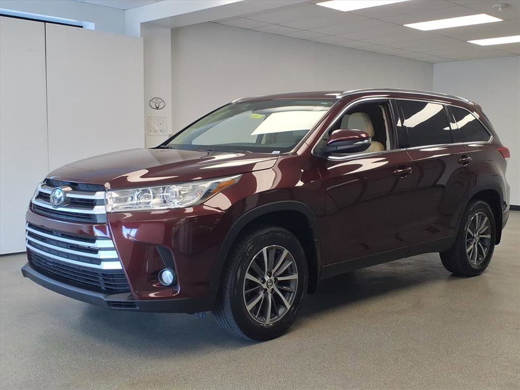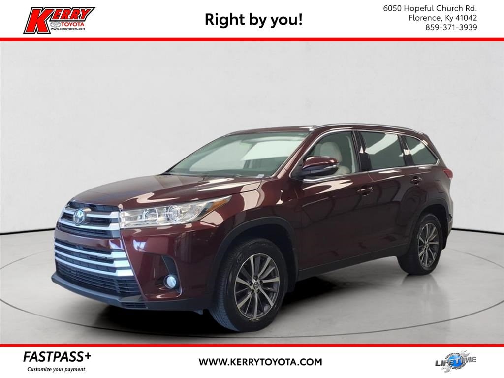 Proudly serving Cincinnati, Florence, Alexandria, Dayton, Hamilton, Dry Ridge, Lexington, Louisville, Nicholasville. Certified. Ooh La La Rouge Mica 2019 Toyota Highlander XLE AWD 8-Speed Automatic Electronic with ECT-i 3.5L V6 6 Speakers, ABS brakes, Active Cruise Control, Alloy wheels, AM/FM radio: SiriusXM, Auto High-beam Headlights, Auto-dimming Rear-View mirror, Brake assist, Bumpers: body-color, CD player, Delay-off headlights, Electronic Stability Control, Exterior Parking Camera Rear, Front dual zone A/C, Front fog lights, Fully automatic headlights, Garage door transmitter, Heated door mirrors, Heated Front Bucket Seats, Heated front seats, Illuminated entry, Knee airbag, Leather Seat Trim, Leather Shift Knob, Low tire pressure warning, Navigation System, Panic alarm, Passenger door bin, Power door mirrors, Power Liftgate, Power moonroof, Radio: Entune Premium Audio w/Nav & App Suite, Rear Bumper Protector (TMS), Rear window wiper, Remote keyless entry, Roof rack: rails only, Security system, Speed control, Spoiler, Traction control, Turn signal indicator mirrors, Variably intermittent wipers, Wheels: 18" Turbine-Look Alloy.