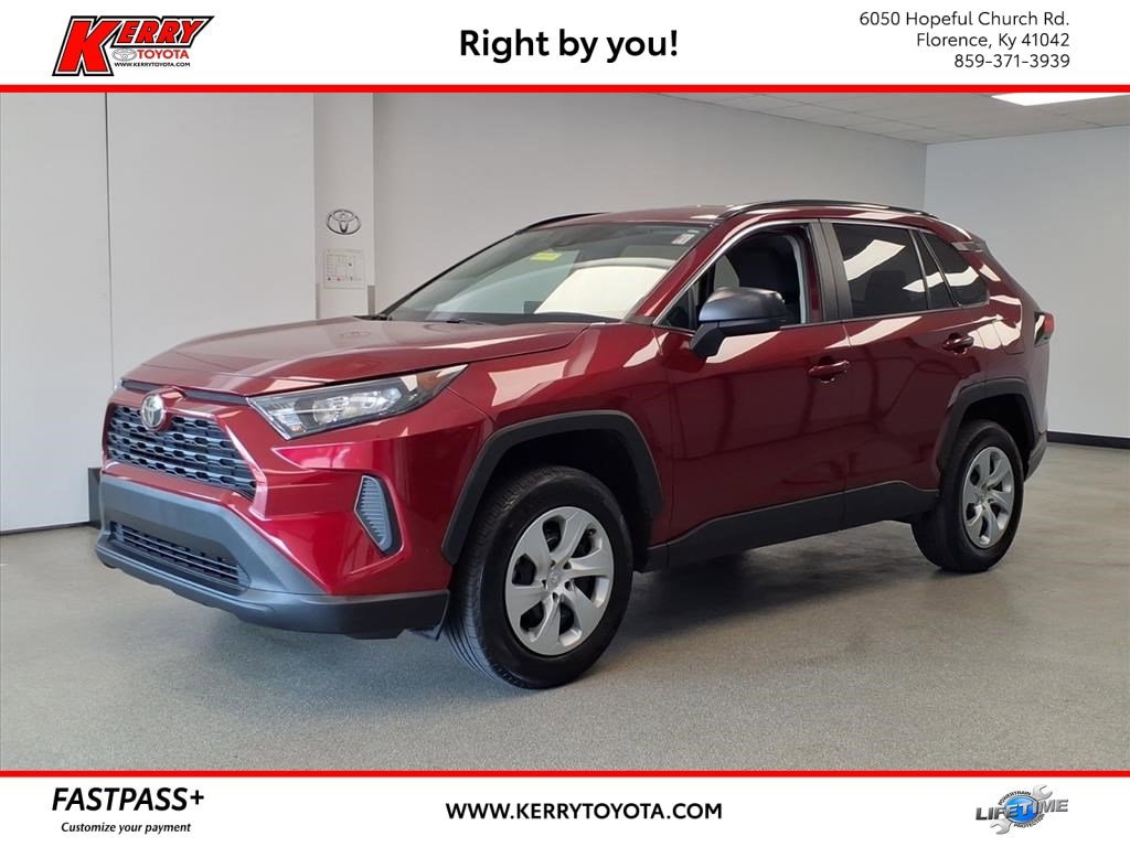 Proudly serving Cincinnati, Florence, Alexandria, Dayton, Hamilton, Dry Ridge, Lexington, Louisville, Nicholasville. Certified. Ruby Flare Pearl 2021 Toyota RAV4 LE FWD 8-Speed Automatic 2.5L 4-Cylinder DOHC Dual VVT-i 17" Steel Wheels, 6 Speakers, AM/FM radio: SiriusXM, AM/FM Stereo, Apple CarPlay/Android Auto, Auto High-beam Headlights, Blackout Emblem Overlays (TMS), Brake assist, Bumpers: body-color, Electronic Stability Control, Emergency communication system, Exterior Parking Camera Rear, Knee airbag, Panic alarm, Passenger door bin, Power door mirrors, Radio data system, Rear window wiper, Roof rack: rails only, Speed control, Spoiler, Traction control.