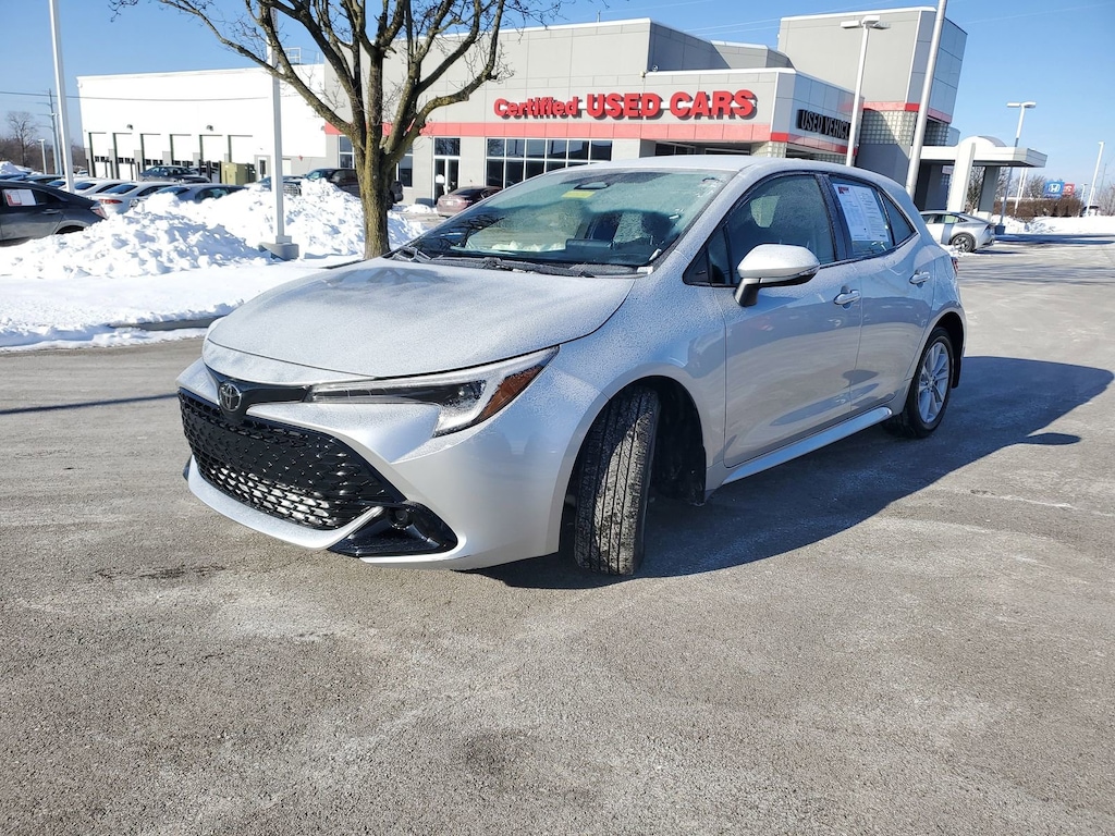 Proudly serving Cincinnati, Florence, Alexandria, Dayton, Hamilton, Dry Ridge, Lexington, Louisville, Nicholasville. Certified. Classic Silver Metallic 2024 Toyota Corolla Hatchback SE FWD CVT 2.0L I4 16" Alloy Wheels, 6 Speakers, ABS brakes, Alloy wheels, AM/FM radio: SiriusXM, Auto High-beam Headlights, Brake assist, Bumpers: body-color, Compass, Delay-off headlights, Electronic Stability Control, Emergency communication system: Safety Connect (up to 10-year trial subscription), Exterior Parking Camera Rear, Heated door mirrors, Illuminated entry, Knee airbag, Leather Shift Knob, Leather steering wheel, Low tire pressure warning, Mudguards (TMS), Panic alarm, Passenger door bin, Power door mirrors, Radio data system, Radio: 8" Toyota Audio Multimedia, Rear window wiper, Remote keyless entry, Security system, Speed control, Spoiler, Traction control, Turn signal indicator mirrors, Variably intermittent wipers.