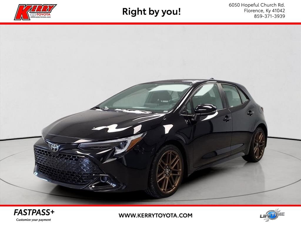 Proudly serving Cincinnati, Florence, Alexandria, Dayton, Hamilton, Dry Ridge, Lexington, Louisville, Nicholasville. Certified. Black 2024 Toyota Corolla Hatchback SE FWD CVT 2.0L I4 16" Alloy Wheels, ABS brakes, Alloy wheels, Compass, Electronic Stability Control, Heated door mirrors, Illuminated entry, Low tire pressure warning, Remote keyless entry, Traction control.