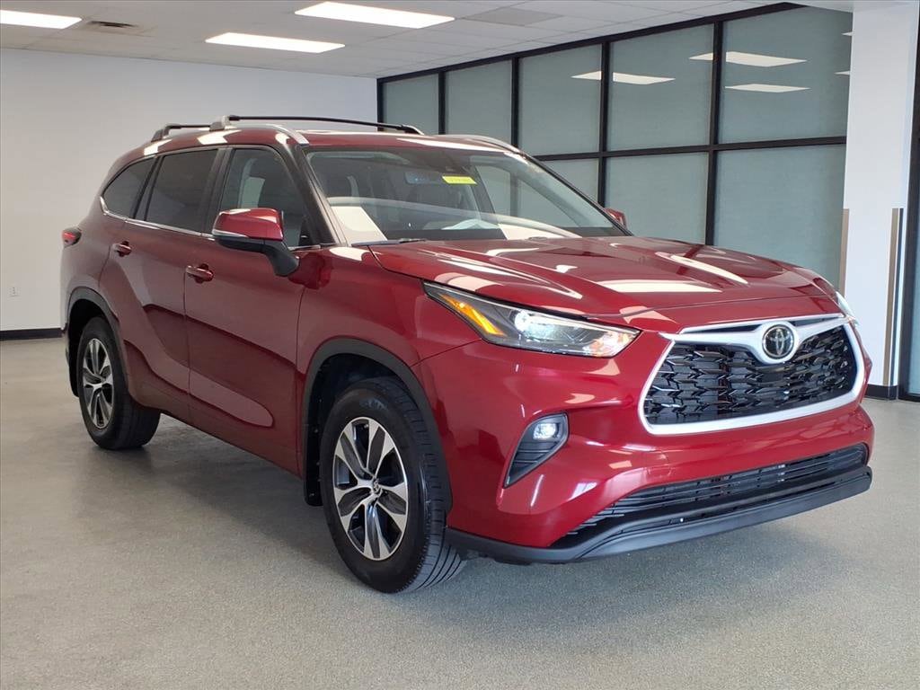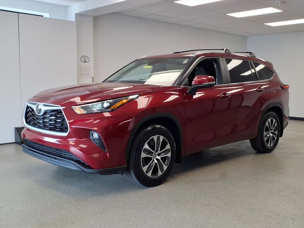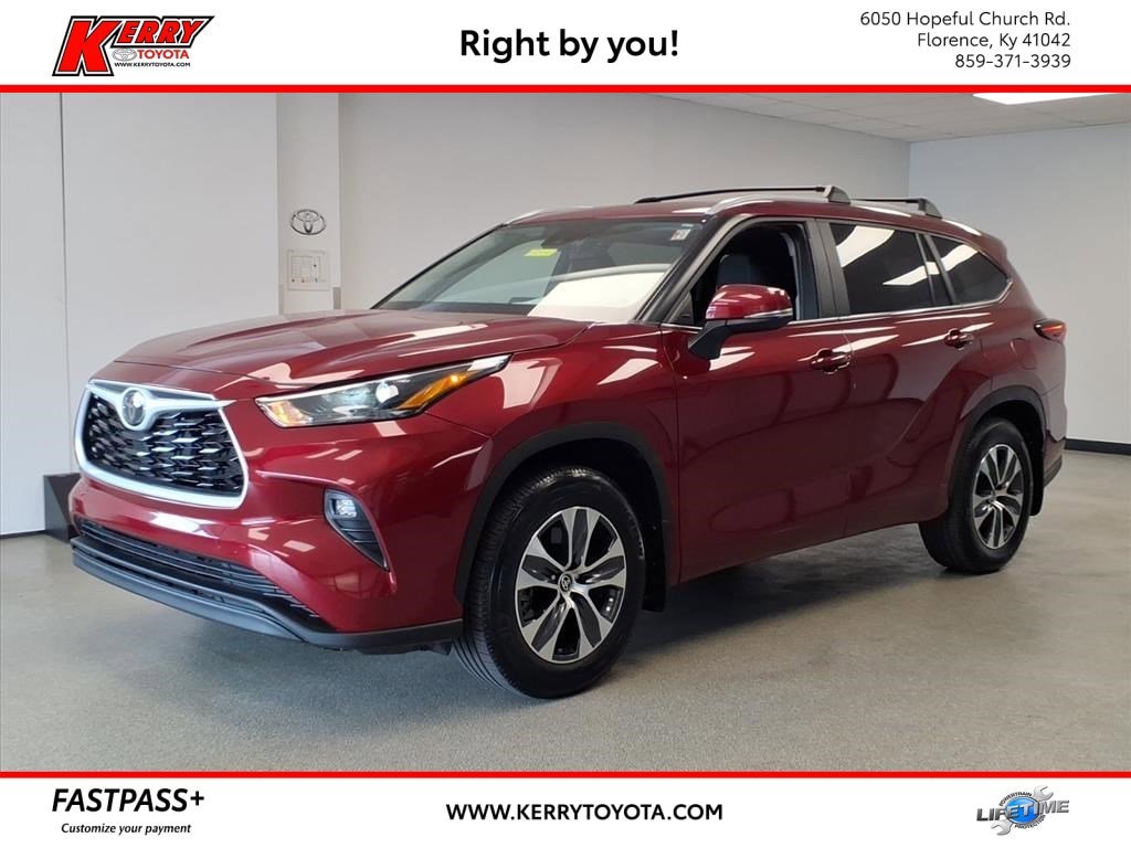 Proudly serving Cincinnati, Florence, Alexandria, Dayton, Hamilton, Dry Ridge, Lexington, Louisville, Nicholasville. Certified. Ruby Flare Pearl 2024 Toyota Highlander XLE AWD 8-Speed Automatic 2.4L I4 PDI Turbocharged DOHC 16V LEV3-SULEV30 265hp 6 Speakers, ABS brakes, Active Cruise Control, Alloy wheels, AM/FM radio: SiriusXM, Apple CarPlay/Android Auto, Auto High-beam Headlights, Auto-dimming Rear-View mirror, Black Emblem Overlays (TMS), Brake assist, Bumpers: body-color, Cargo Cover (TMS), Cargo Cross Bars (TMS), Chrome Rear Bumper Protector (TMS), Dashcam (TMS), Delay-off headlights, Door Edge Guards (TMS), Electronic Stability Control, Emergency communication system: Safety Connect (up to 10-year trial subscription), Exterior Parking Camera Rear, Front dual zone A/C, Front fog lights, Fully automatic headlights, Garage door transmitter: HomeLink, Heated door mirrors, Heated Front Bucket Seats, Heated front seats, Illuminated Door Sills (TMS), Illuminated entry, Knee airbag, Leather Shift Knob, Leather steering wheel, Low tire pressure warning, Paint Protection Film (TMS), Panic alarm, Passenger door bin, Power door mirrors, Power Liftgate, Power moonroof, Radio: 12.3" Toyota Audio Multimedia w/6 Speakers, Radio: 8" Toyota Audio Multimedia, Rear window wiper, Remote keyless entry, Security system, Speed control, Spoiler, Tow Hitch (TMS), Traction control, Turn signal indicator mirrors, Variably intermittent wipers, Wheels: 18" Machined-Finish Alloy.