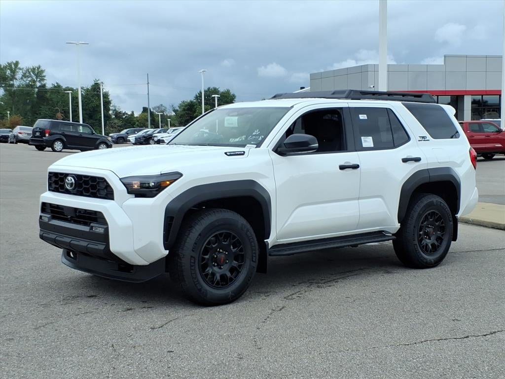 Ice 2025 Toyota 4Runner i-FORCE MAX Hybrid TRD Off-Road 4WD 8-Speed Automatic 2.4L I4 FI Hybrid Turbocharged DOHC 16V 4Runner All Weather Cargo Tray (TMS), 4Runner All Weather Floor Mats (TMS), 8 Speakers, Alloy wheels, AM/FM radio: SiriusXM, Apple CarPlay/Android Auto, ARB Platform 3/4 Length Roof Rack (TMS), Auto High-beam Headlights, Black Chrome Wheel Locks (TMS), Brake assist, Bumpers: body-color, Electronic Stability Control, Emergency communication system: Safety Connect (1-year trial), Exterior Parking Camera Rear, Front & Rear Molded Black 4Runner Mudguards (TMS), Front Color Keyed Door Edge Guards (TMS), Front fog lights, Front Illuminated Bright Chrome Badge (TMS), Heated door mirrors, Heated Front Bucket Seats, Interior D-Pillar Cargo Lights (TMS), Knee airbag, Leather Shift Knob, Leather steering wheel, Panic alarm, Passenger door bin, Power door mirrors, Radio: 8" Audio System, Rear window wiper, Security system, Speed control, Spoiler, Traction control, TRD Off Road Base, Variably intermittent wipers, Wheels: 18" Accessory TRD Black (TMS), Wheels: 18" Matte-Black Painted Alloy.