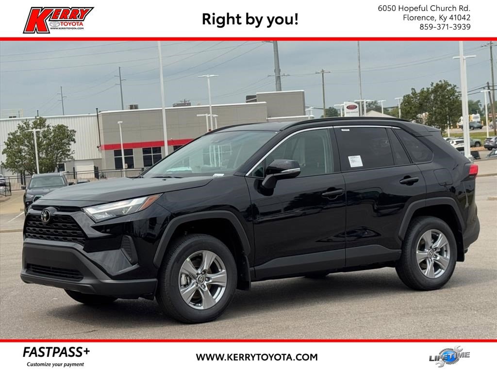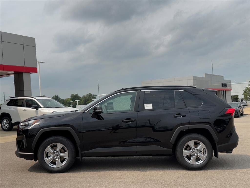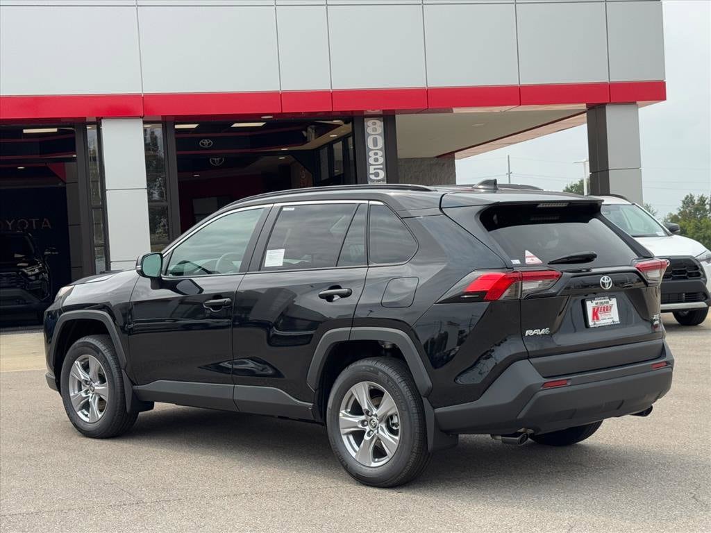 Midnight Black Metallic 2025 Toyota RAV4 XLE AWD 8-Speed Automatic 2.5L 4-Cylinder DOHC Dual VVT-i 3 Spoke Leather Heated Steering Wheel, 6 Speakers, All Weather Floor Liners & Cargo Liner (TMS), Alloy wheels, AM/FM radio: SiriusXM, Auto High-beam Headlights, Black Chrome Exhaust Tip (TMS), Blackout Emblem Overlays (TMS), Brake assist, Bumpers: body-color, Convenience Package, Delay-off headlights, Door Edge Guard (TMS), Electronic Stability Control, Emergency communication system: Safety Connect (10-year trial), Exterior Parking Camera Rear, Frameless HomeLink Mirror (TMS), Front Door Smart Key System w/Push Button Start, Front Seat Heating, Fully automatic headlights, Heated door mirrors, Knee airbag, Mudguards (TMS), Panic alarm, Passenger door bin, Power door mirrors, Radio data system, Radio: AM/FM/XM Audio System, Rear window wiper, Speed control, Spoiler, Tilt & Slide Moon Roof, Traction control, Turn signal indicator mirrors, Variably intermittent wipers, Weather Package, Wheel Locks (TMS), Wheels: 17" 5-Spoke Silver Alloy.