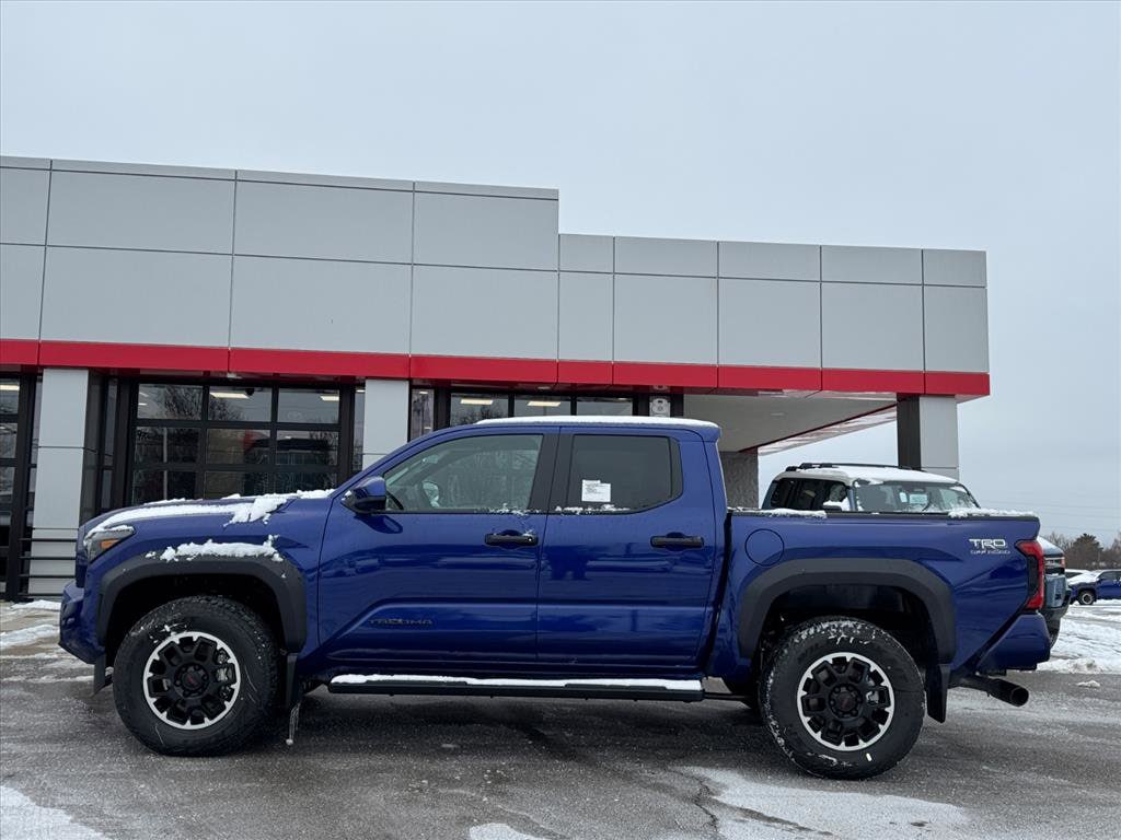 Blue Crush Metallic 2025 Toyota Tacoma TRD Off-Road 4WD 8-Speed Automatic 2.4L 4-Cylinder 6 Speakers, All Weather Floor Liners (TMS), Alloy wheels, AM/FM radio: SiriusXM, Apple CarPlay/Android Auto, Auto High-beam Headlights, Auto-dimming Rear-View mirror, Bed Step (TMS), Black Chrome Exhaust Tip (TMS), Brake assist, Bumpers: body-color, Dash Cam (TMS), Door Edge Guard (TMS), Electronic Stability Control, Emergency communication system: Safety Connect (1-year trial), Exterior Parking Camera Rear, Front fog lights, Fully automatic headlights, Heated door mirrors, IP Side Accessory - LED Lantern (TMS), JBL Premium Audio, Knee airbag, Leather Shift Knob, Leather steering wheel, Mudguards (TMS), Panic alarm, Passenger door bin, Power door mirrors, Predator Step (TMS), Radio: 8" Toyota Audio Multimedia, Rear step bumper, Security system, Speed control, Spray-On Bed Liner (TMS), Traction control, Turn signal indicator mirrors, Variably intermittent wipers, Wheel Locks (TMS), Wheels: 17" TRD Off-Road Alloy.