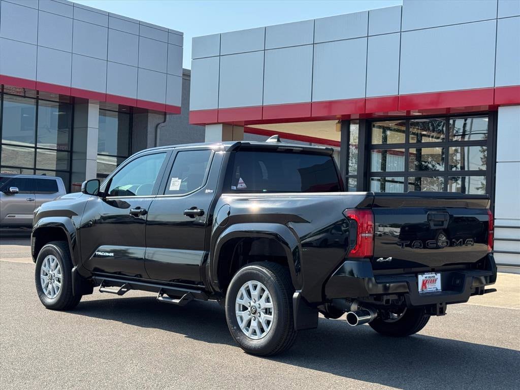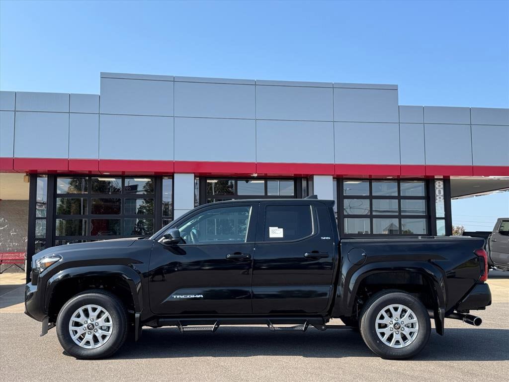 Black 2025 Toyota Tacoma SR5 4WD 8-Speed Automatic 2.4L 4-Cylinder 6 Speakers, All Weather Floor Liners (TMS), Alloy wheels, AM/FM radio: SiriusXM, Apple CarPlay/Android Auto, Auto High-beam Headlights, Auto-dimming Rear-View mirror, Bed Step (TMS), Brake assist, Bumpers: body-color, Chrome Exhaust Tip (TMS), Door Edge Guard (TMS), Driver door bin, Electronic Stability Control, Emergency communication system: Safety Connect (1-year trial), Exterior Parking Camera Rear, Front fog lights, Front reading lights, Fully automatic headlights, Heated door mirrors, Heated Seats, Illuminated entry, Knee airbag, Mudguards (TMS), Panic alarm, Passenger door bin, Power door mirrors, Predator Step (TMS), Radio: 8" Toyota Audio Multimedia, Rear step bumper, Speed control, Spray-On Bed Liner (TMS), Traction control, Variably intermittent wipers, Wheel Locks (TMS), Wheels: 17" Styled Alloy.