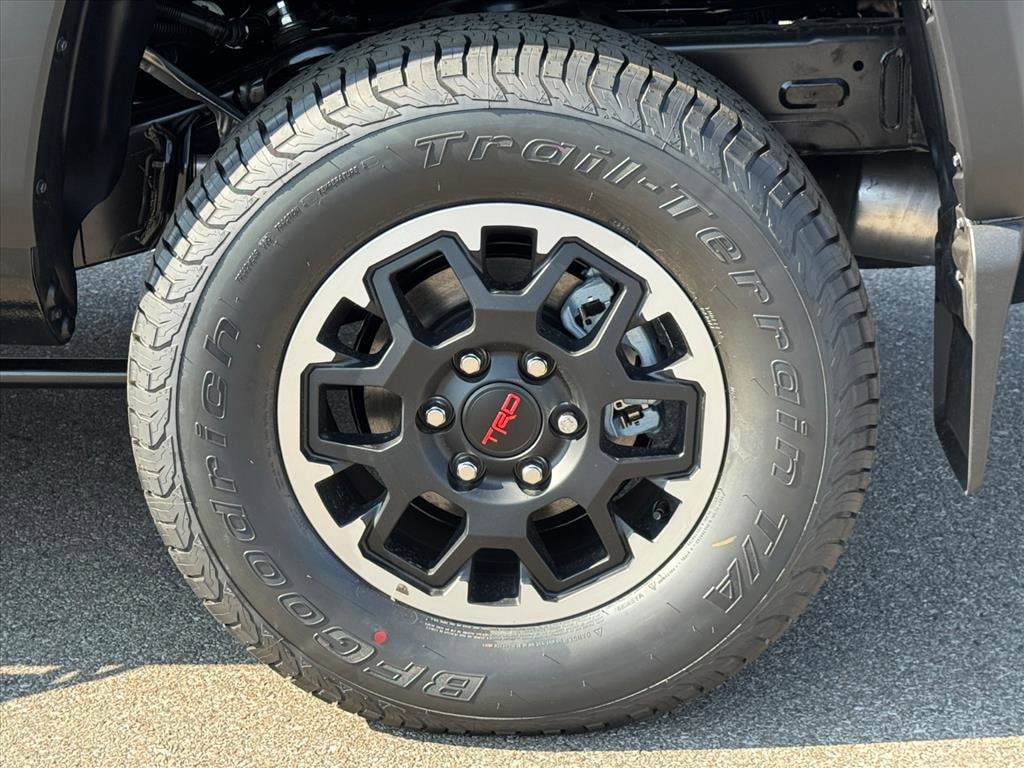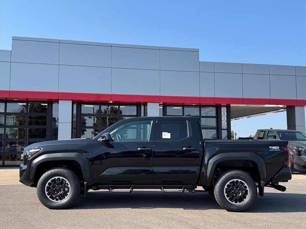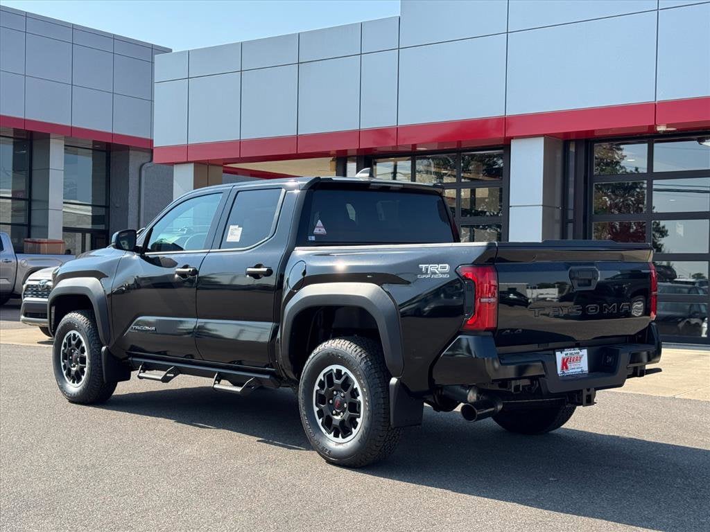 Black 2025 Toyota Tacoma TRD Off-Road 4WD 8-Speed Automatic 2.4L 4-Cylinder 6 Speakers, All Weather Floor Liners (TMS), Alloy wheels, AM/FM radio: SiriusXM, Apple CarPlay/Android Auto, Auto High-beam Headlights, Auto-dimming Rear-View mirror, Bed Step (TMS), Black Chrome Exhaust Tip (TMS), Brake assist, Bumpers: body-color, Door Edge Guard (TMS), Electronic Stability Control, Exterior Parking Camera Rear, Front fog lights, Fully automatic headlights, Heated door mirrors, Heated Seats, Illuminated Front Emblem Dark Chrome (TMS), Leather Shift Knob, Leather steering wheel, Mudguards (TMS), Panic alarm, Passenger door bin, Power door mirrors, Predator Step (TMS), Radio: 8" Toyota Audio Multimedia, Rear step bumper, Security system, Speed control, Spray-On Bed Liner (TMS), Traction control, TRD Off Road Package, Turn signal indicator mirrors, Variably intermittent wipers, Wheel Locks (TMS), Wheels: 17" TRD Off-Road Alloy.