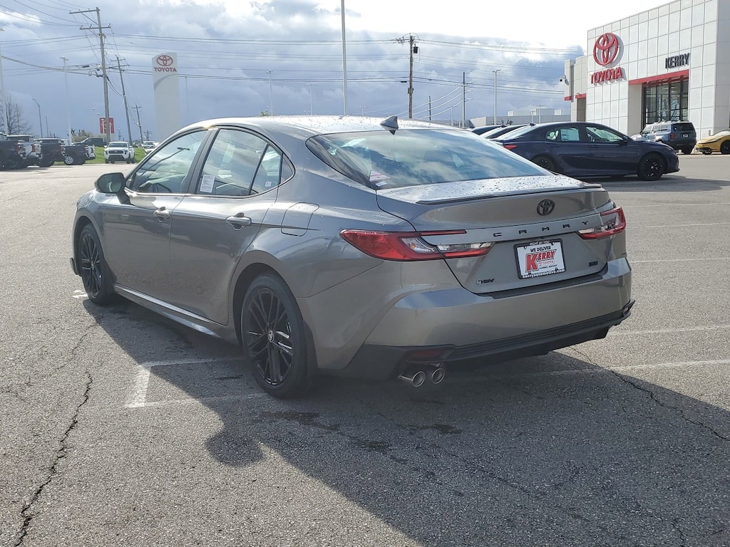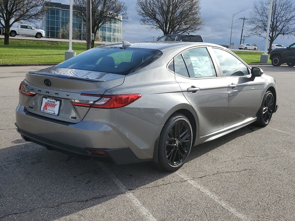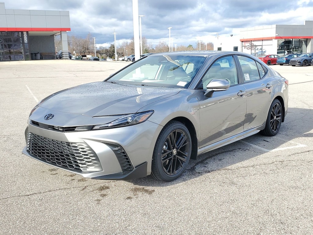 Heavy Metal 2026 Toyota Camry SE FWD eCVT 2.5L 4-Cylinder 16V DOHC 6 Speakers, All Weather Floor Protection, Alloy wheels, AM/FM radio: SiriusXM, Apple CarPlay/Android Auto, Auto High-beam Headlights, Auto-Dimming Rearview Mirror with HomeLink, Black Badge Overlays, Brake assist, Bumpers: body-color, Cold Weather Package, Convenience Package, Delay-off headlights, Door Edge Guard, Electronic Stability Control, Emergency communication system: Safety Connect (5-year trial), Exterior Parking Camera Rear, Fully automatic headlights, Heated door mirrors, Heated Front Seats, Heated Leather Steering Wheel with Paddle Shifters, Knee airbag, Leather Shift Knob, Leather steering wheel, Low tire pressure warning, Mudguards, Panic alarm, Passenger door bin, Power door mirrors, Radio data system, Radio: 12.3" Toyota Multimedia Audio, Radio: 8" Toyota Audio Multimedia, Rear Bumper Applique, Security system, Smart Key System on Front Doors, Speed control, Spoiler, Traction control, Turn signal indicator mirrors, Variably intermittent wipers, Wheel Locks, Wheels: 18" Multi-Spoke Black-Finished Alloy.