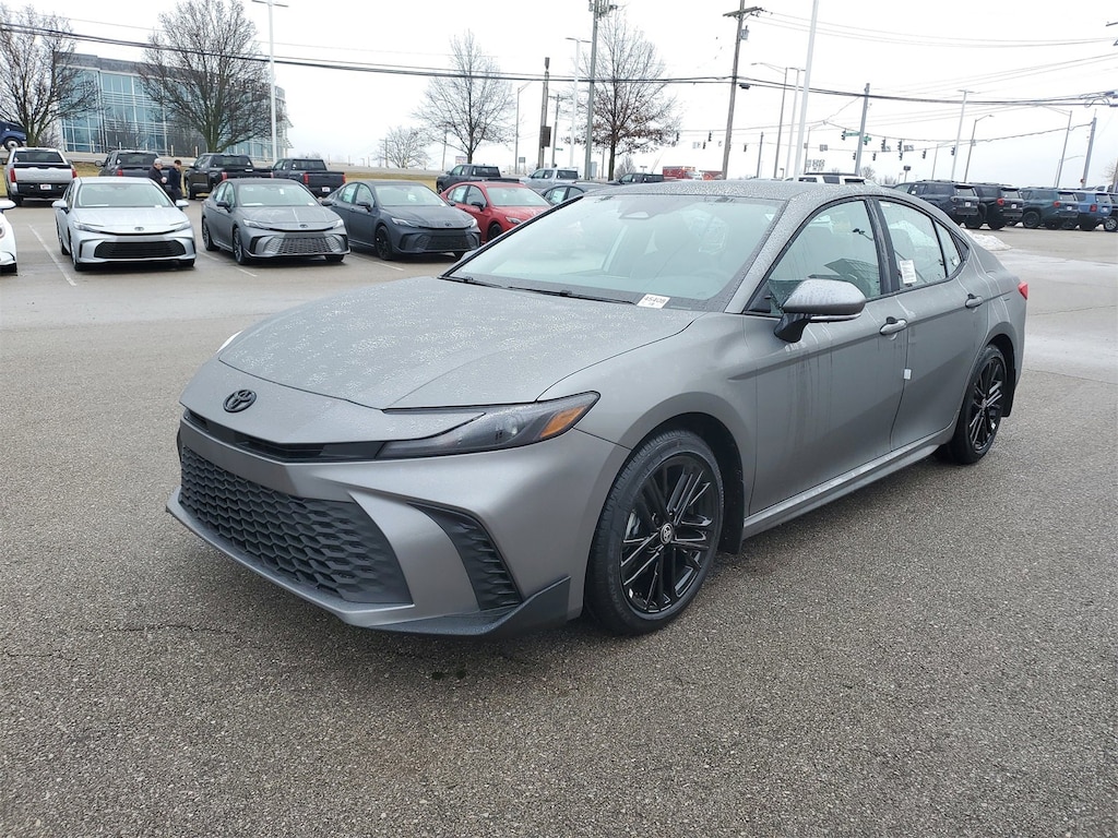 Heavy Metal 2026 Toyota Camry SE FWD eCVT 2.5L 4-Cylinder 16V DOHC 6 Speakers, All Weather Floor Protection, Alloy wheels, AM/FM radio: SiriusXM, Apple CarPlay/Android Auto, Auto High-beam Headlights, Auto-Dimming Rearview Mirror with HomeLink, Black Badge Overlays, Brake assist, Bumpers: body-color, Cold Weather Package, Convenience Package, Delay-off headlights, Door Edge Guard, Electronic Stability Control, Emergency communication system: Safety Connect (5-year trial), Exterior Parking Camera Rear, Fully automatic headlights, Heated door mirrors, Heated Front Seats, Heated Leather Steering Wheel with Paddle Shifters, Knee airbag, Low tire pressure warning, Mudguards, Panic alarm, Passenger door bin, Power door mirrors, Radio data system, Radio: 12.3" Toyota Multimedia Audio, Radio: 8" Toyota Audio Multimedia, Rear Bumper Applique, Security system, Smart Key System on Front Doors, Speed control, Spoiler, Traction control, Turn signal indicator mirrors, Variably intermittent wipers, Wheel Locks, Wheels: 18" Multi-Spoke Black-Finished Alloy.