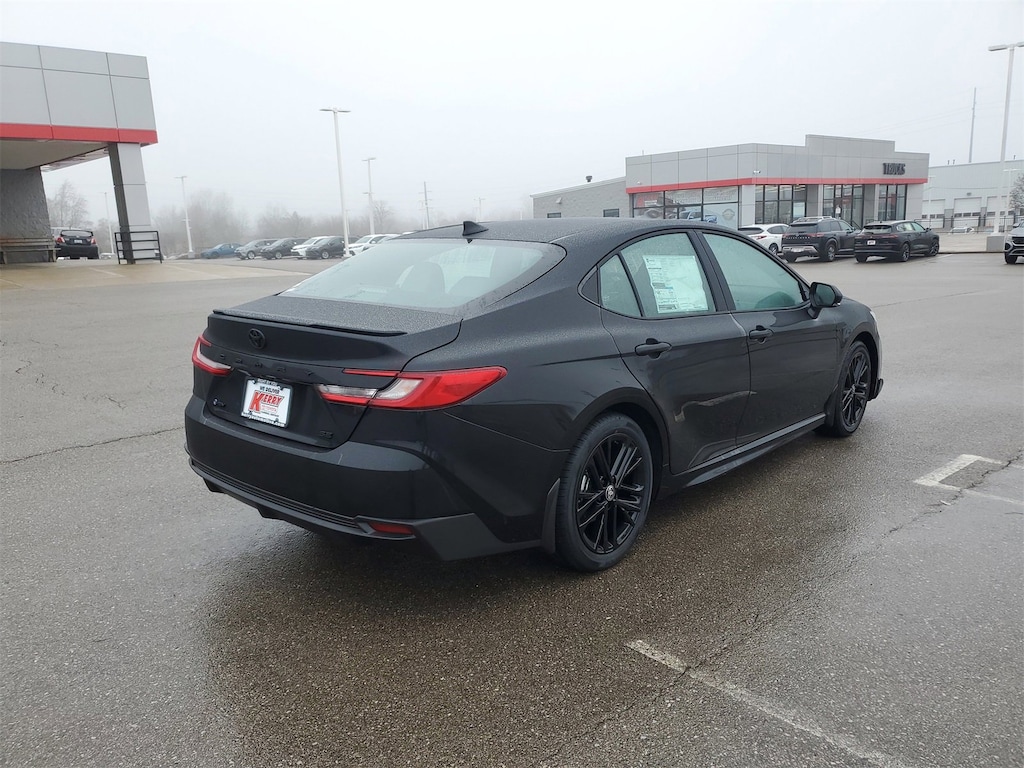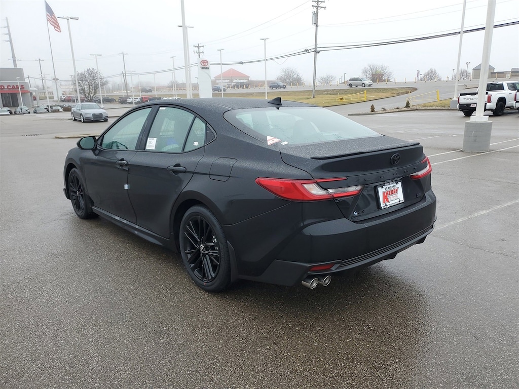 Midnight Black Metallic 2026 Toyota Camry SE FWD eCVT 2.5L 4-Cylinder 16V DOHC 6 Speakers, All Weather Floor Protection, Alloy wheels, AM/FM radio: SiriusXM, Apple CarPlay/Android Auto, Auto High-beam Headlights, Black Badge Overlays, Brake assist, Bumpers: body-color, Delay-off headlights, Door Edge Guard, Electronic Stability Control, Emergency communication system: Safety Connect (5-year trial), Exterior Parking Camera Rear, Fully automatic headlights, Heated door mirrors, Heated Front Seats, Knee airbag, Leather Shift Knob, Leather steering wheel, Low tire pressure warning, Mudguards, Panic alarm, Passenger door bin, Power door mirrors, Power Tilt/Slide Moonroof, Radio data system, Radio: 12.3" Toyota Multimedia Audio, Radio: 8" Toyota Audio Multimedia, Rear Bumper Applique, Security system, Speed control, Spoiler, Traction control, Turn signal indicator mirrors, Variably intermittent wipers, Wheel Locks, Wheels: 18" Multi-Spoke Black-Finished Alloy.