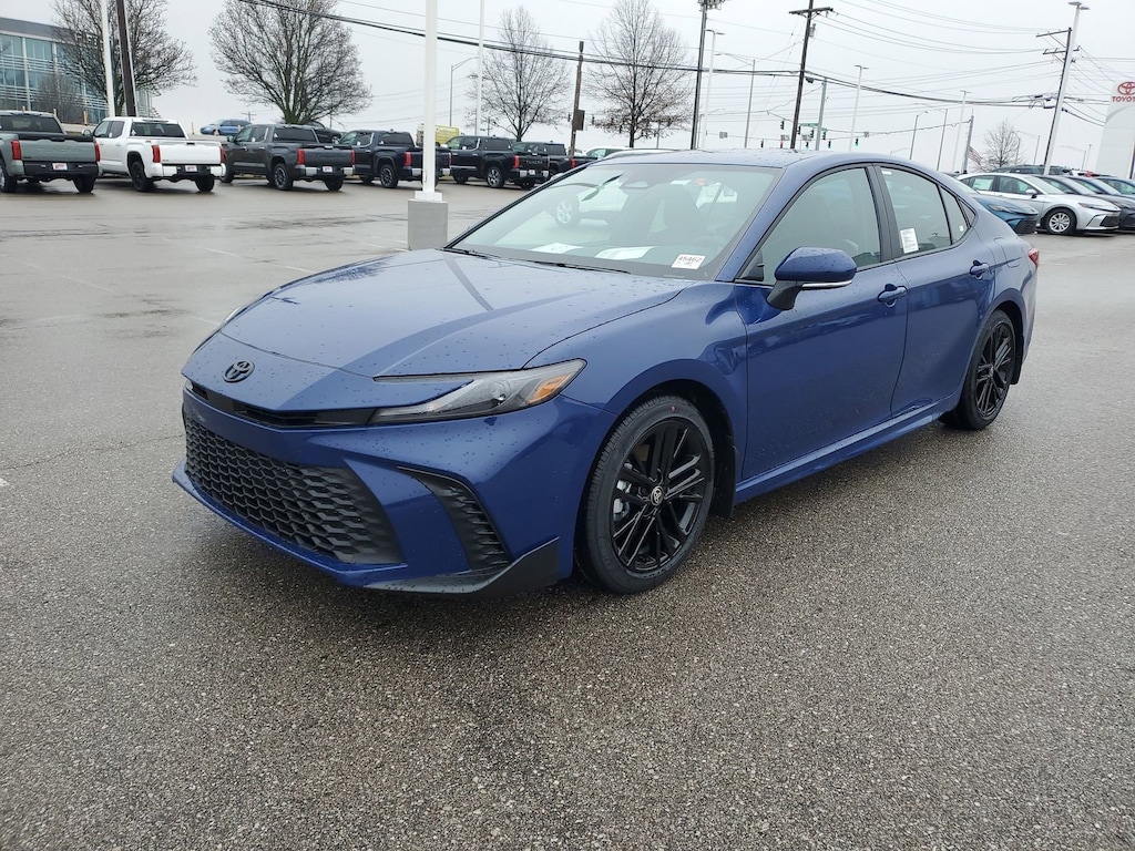 Reservoir Blue 2026 Toyota Camry SE FWD eCVT 2.5L 4-Cylinder 16V DOHC 6 Speakers, All Weather Floor Protection, Alloy wheels, AM/FM radio: SiriusXM, Apple CarPlay/Android Auto, Auto High-beam Headlights, Auto-Dimming Rearview Mirror with HomeLink, Black Badge Overlays, Brake assist, Bumpers: body-color, Cold Weather Package, Convenience Package, Delay-off headlights, Door Edge Guard, Electronic Stability Control, Emergency communication system: Safety Connect (5-year trial), Exterior Parking Camera Rear, Fully automatic headlights, Heated door mirrors, Heated Front Seats, Heated Leather Steering Wheel with Paddle Shifters, Knee airbag, Leather Shift Knob, Leather steering wheel, Low tire pressure warning, Mudguards, Panic alarm, Passenger door bin, Power door mirrors, Radio data system, Radio: 12.3" Toyota Multimedia Audio, Radio: 8" Toyota Audio Multimedia, Rear Bumper Applique, Security system, Smart Key System on Front Doors, Speed control, Spoiler, Traction control, Turn signal indicator mirrors, Variably intermittent wipers, Wheel Locks, Wheels: 18" Multi-Spoke Black-Finished Alloy.