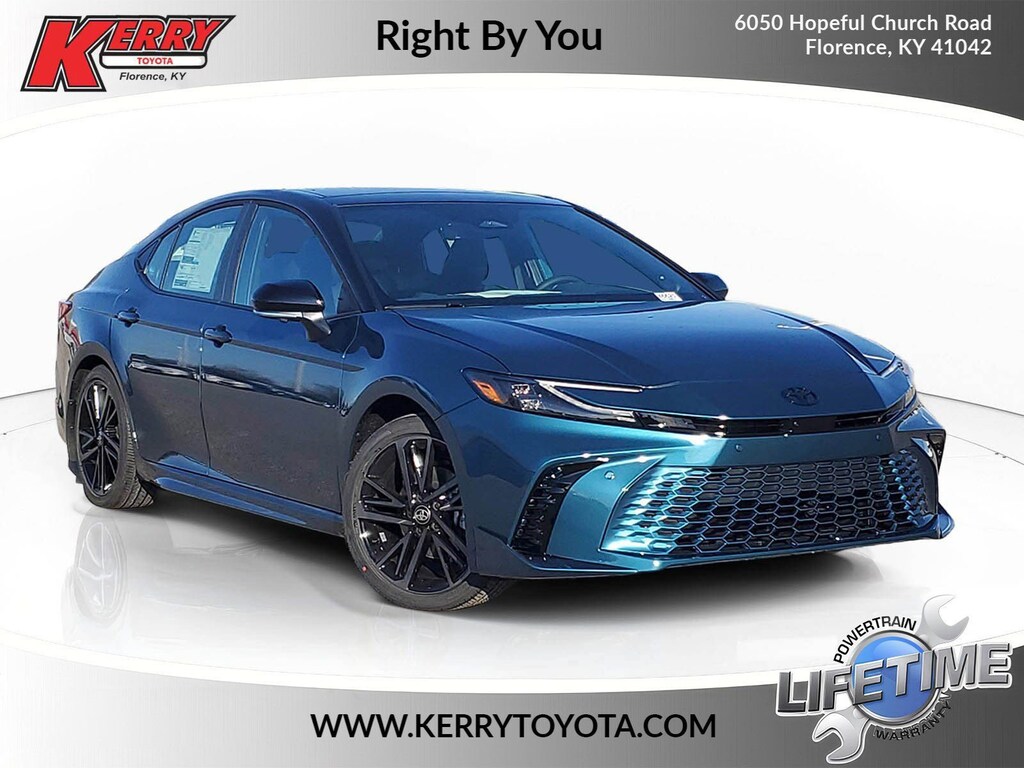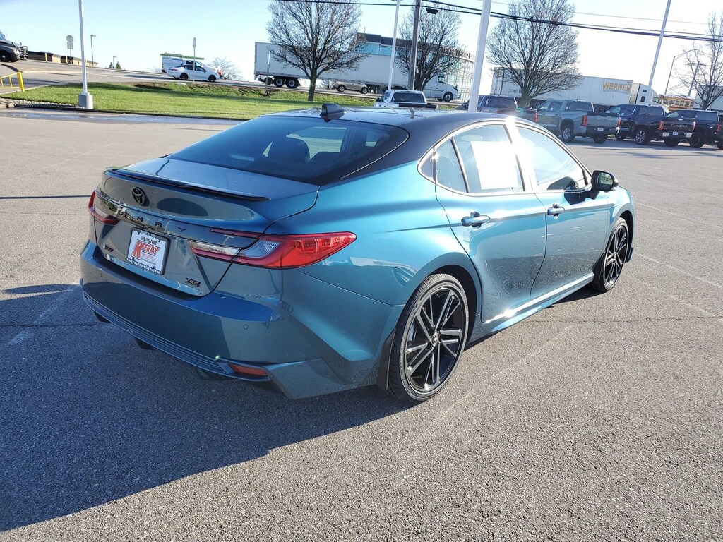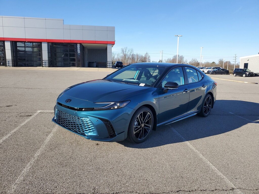 Ocean Gem/Midnight Black Metallic 2026 Toyota Camry XSE FWD eCVT 2.5L 4-Cylinder 16V DOHC 10" Color Head-Up Display, 6 Speakers, 9-Speaker JBL Premium Audio System, All Weather Floor Protection, Alloy wheels, AM/FM radio: SiriusXM, Apple CarPlay/Android Auto, Auto High-beam Headlights, Auto-dimming Rear-View mirror, Black Badge Overlays, Brake assist, Bumpers: body-color, Delay-off headlights, Digital Key Compatibility, Door Edge Guard, Driver Monitor Camera, Driver's Seat and Outer-Mirror Memory, Electronic Stability Control, Emergency communication system: Safety Connect (5-year trial), Exterior Parking Camera Rear, Front and Rear Parking Assist with Automatic Braking, Front Cross-Traffic Alert, Fully automatic headlights, Garage door transmitter: HomeLink, Heated door mirrors, Heated Front Seats, Heated front seats, Heated steering wheel, Knee airbag, Lane Change Assist, Leather Seat Trim, Leather Shift Knob, Leather steering wheel, Low tire pressure warning, Mudguards, Navigation system: Drive Connect (1 year trial) includes Cloud Navigation with real time traffic and Google POI, Panic alarm, Panoramic Glass Roof, Panoramic View Monitor, Passenger door bin, Power door mirrors, Premium Plus Package, Radio data system, Radio: 12.3" Toyota Multimedia Audio, Rain-Sensing Windshield Wipers, Rear Bumper Applique, Rear Cross-Traffic Braking, Security system, Speed control, Spoiler, Traction control, Traffic Jam Assist, Turn signal indicator mirrors, Two-Tone Color, Variably intermittent wipers, Ventilated Front Seats, Wheel Locks, Wheels: 19" Smoked Gray and Black-Finished Alloy.