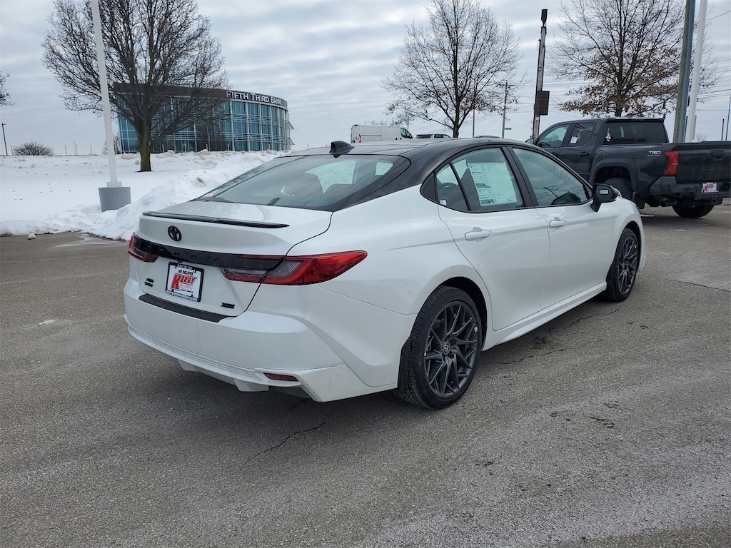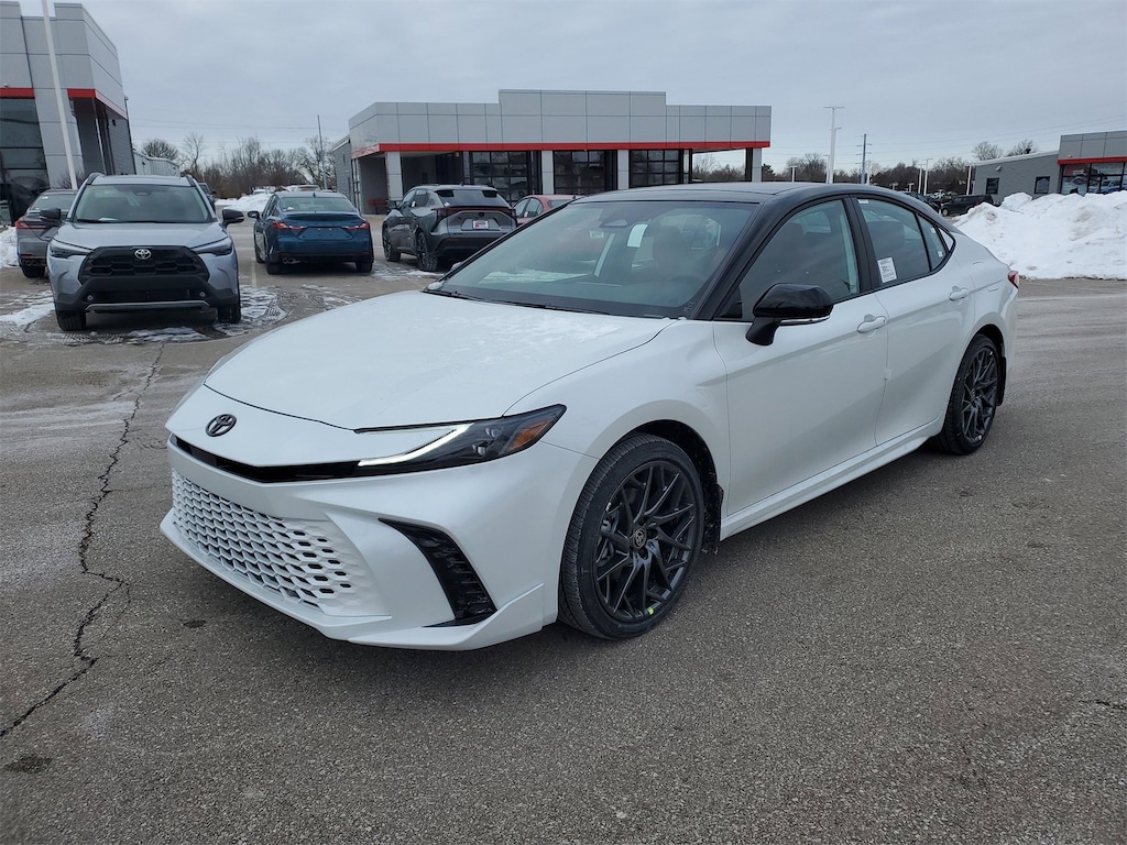 Wind Chill Pearl/Black 2026 Toyota Camry XSE AWD eCVT 2.5L 4-Cylinder 16V DOHC 6 Speakers, All Weather Floor Protection, Alloy wheels, AM/FM radio: SiriusXM, Apple CarPlay/Android Auto, Auto High-beam Headlights, Auto-dimming Rear-View mirror, Black Badge Overlays, Brake assist, Bumpers: body-color, Dashcam, Delay-off headlights, Door Edge Guard, Electronic Stability Control, Emergency communication system: Safety Connect (5-year trial), Exterior Parking Camera Rear, Fully automatic headlights, Garage door transmitter: HomeLink, Heated door mirrors, Heated Front Seats, Heated front seats, Heated steering wheel, Knee airbag, Leather Seat Trim, Leather Shift Knob, Leather steering wheel, Low tire pressure warning, Mudguards, Navigation system: Drive Connect (1 year trial) includes Cloud Navigation with real time traffic and Google POI, Panic alarm, Panoramic Glass Roof, Passenger door bin, Power door mirrors, Radio data system, Radio: 12.3" Toyota Multimedia Audio, Rear Bumper Applique, Security system, Speed control, Spoiler, Traction control, Turn signal indicator mirrors, Two-Tone Color, Variably intermittent wipers, Wheels: 19" Dark Gray Metallic, Wheels: 19" Smoked Gray and Black-Finished Alloy.