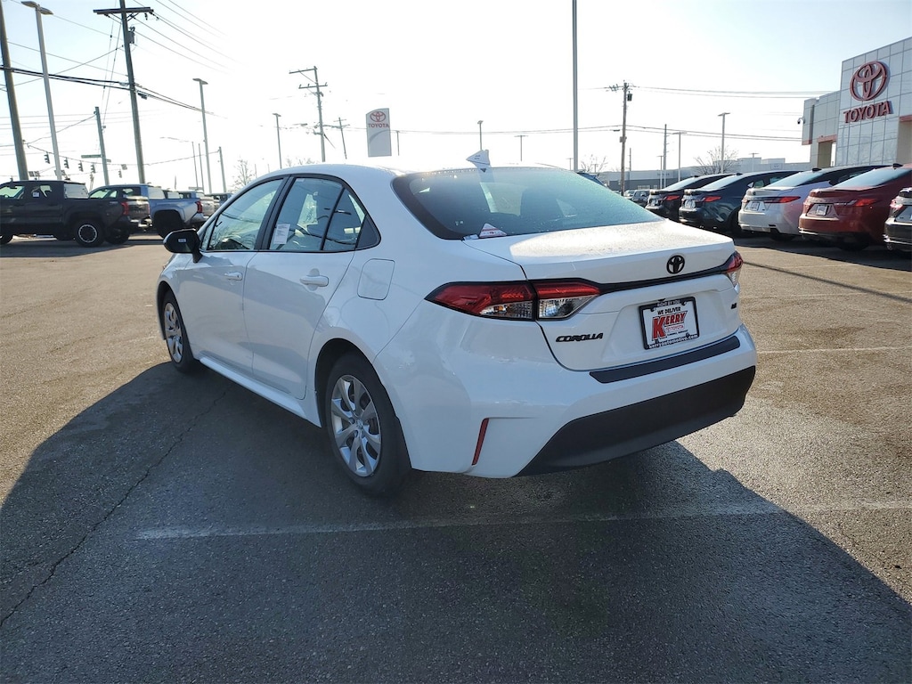 Ice Cap 2026 Toyota Corolla LE FWD CVT 2.0L I4 PDI DOHC 16V LEV3-SULEV30 169hp 6 Speakers, All Weather Floor Liner Package, AM/FM radio: SiriusXM, Apple CarPlay/Android Auto, Auto High-beam Headlights, Black Badge Overlays, Brake assist, Bumpers: body-color, Delay-off headlights, Door Edge Guards, Electronic Stability Control, Emergency communication system: Safety Connect (up to 10-year trial subscription), Exterior Parking Camera Rear, Fully automatic headlights, Heated door mirrors, Knee airbag, Low tire pressure warning, Mudguards, Panic alarm, Passenger door bin, Power door mirrors, Radio data system, Radio: 8" Toyota Audio Multimedia, Rear Bumper Protector, Speed control, Traction control, Wheels: 16" Steel with Covers.