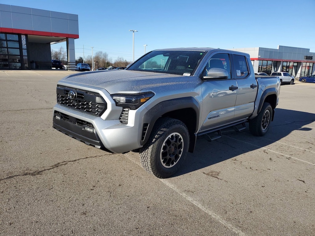 Celestial Silver Metallic 2026 Toyota Tacoma TRD Off-Road 4WD 8-Speed Automatic 2.4L 4-Cylinder 18" Wheels, 6 Speakers, All Weather Floor Liners, Alloy wheels, AM/FM radio: SiriusXM, Apple CarPlay/Android Auto, Auto High-beam Headlights, Auto-dimming Rear-View mirror, Bed Scene Lighting, Bed Step, Black Chrome Exhaust Tip, Brake assist, Bumpers: body-color, Door Edge Guard, Electronic Stability Control, Emergency communication system: Safety Connect (up to 10-year trial subscription), Exterior Parking Camera Rear, Front fog lights, Fully automatic headlights, Heated door mirrors, Heated Seats, Illuminated Front Emblem Bright Chrome, IP Side Accessory - LED Lantern, JBL Premium Audio, Knee airbag, Leather Shift Knob, Leather steering wheel, Low tire pressure warning, Mudguards, Panic alarm, Passenger door bin, Power door mirrors, Radio: 8" Toyota Audio Multimedia, Rear step bumper, Removable Predator Step, Security system, Speed control, Spray-on Bed Liner, Traction control, TRD Off Road Package, Turn signal indicator mirrors, Variably intermittent wipers, Wheel Locks.