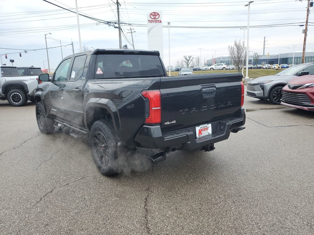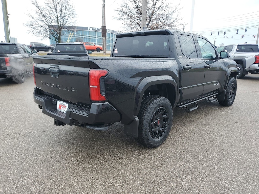 Black 2026 Toyota Tacoma SR5 4WD 8-Speed Automatic 2.4L 4-Cylinder 6 Speakers, All Weather Floor Liners, Alloy wheels, AM/FM radio: SiriusXM, Apple CarPlay/Android Auto, Auto High-beam Headlights, Auto-dimming Rear-View mirror, Bed Step, Black Chrome Exhaust Tip, Brake assist, Bumpers: body-color, Door Edge Guard, Electronic Stability Control, Emergency communication system: Safety Connect (up to 10-year trial subscription), Exterior Parking Camera Rear, Front fog lights, Fully automatic headlights, Heated door mirrors, IP Side Accessory - LED Lantern, JBL Premium Audio, Knee airbag, Low tire pressure warning, Mudguards, Panic alarm, Passenger door bin, Power door mirrors, Radio: 8" Toyota Audio Multimedia, Rear step bumper, Removable Predator Step, Speed control, Spray-on Bed Liner, Traction control, Variably intermittent wipers, Wheel Locks, Wheels: 17" Styled Alloy, Wheels: 18" Accessory TRD Black.