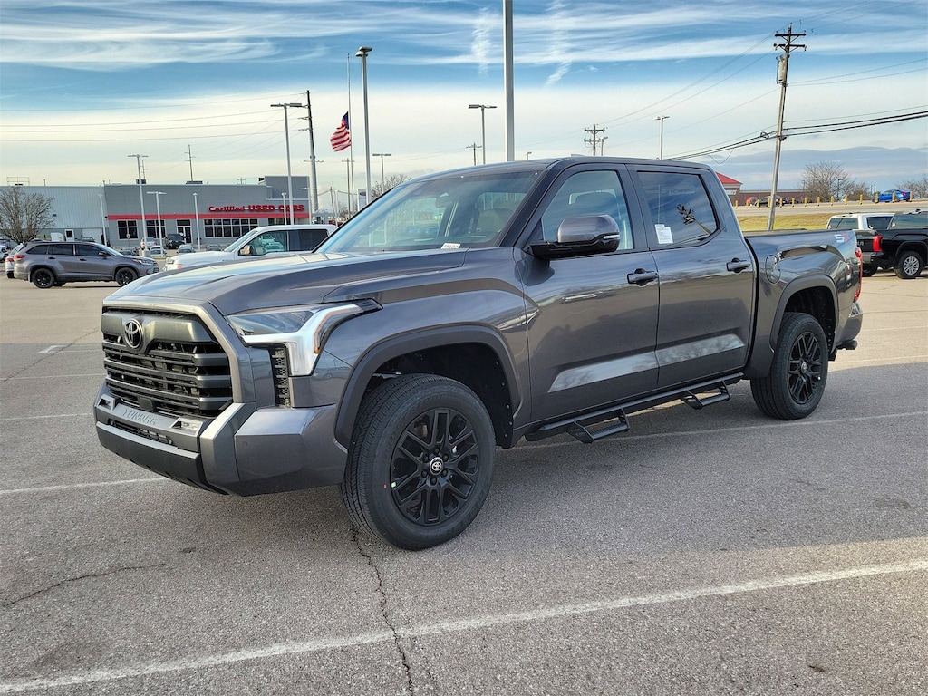 Magnetic Gray Metallic 2026 Toyota Tundra SR5 4WD 10-Speed Automatic 3.4L V6 18" Alloy Wheels, 20" Wheels, 4-Way Manual Front Seats, 9 Speakers, All Weather Floor Liners (TMS), Alloy wheels, AM/FM radio: SiriusXM, Apple CarPlay/Android Auto, Auto High-beam Headlights, Bed Step (TMS), Blind Spot Monitor, Blind Spot Monitor w/Lane Change Assist, Brake assist, Bumpers: body-color, Delay-off headlights, Electronic Stability Control, Emergency communication system: Safety Connect (up to 10-year trial subscription), Exhaust Tip - Black Chrome (TMS), Exterior Parking Camera Rear, Fabric Seat Trim, Front fog lights, Fully automatic headlights, Heated door mirrors, Knee airbag, Low tire pressure warning, Panic alarm, Parking Support Alert/Brake, Passenger door bin, Power door mirrors, Predator Drop Step (TMS), Radio data system, Radio: Audio Multimedia System, Rear step bumper, Safety Connect, Security system, Speed control, SR5 Convenience Package, SR5 Painted Mirror, Stainless Steel Door Edge Guards (TMS), SX Package, Traction control, Variably intermittent wipers, Wheel Locks (TMS), Wheels: 20" TRD Sport Alloy.