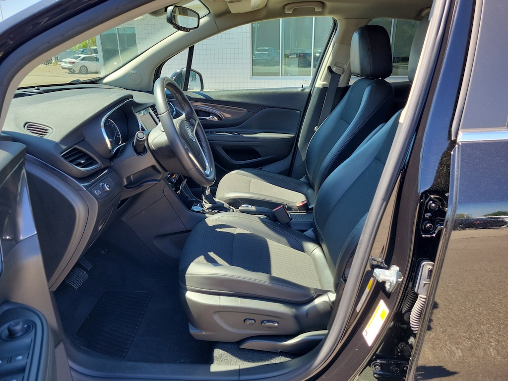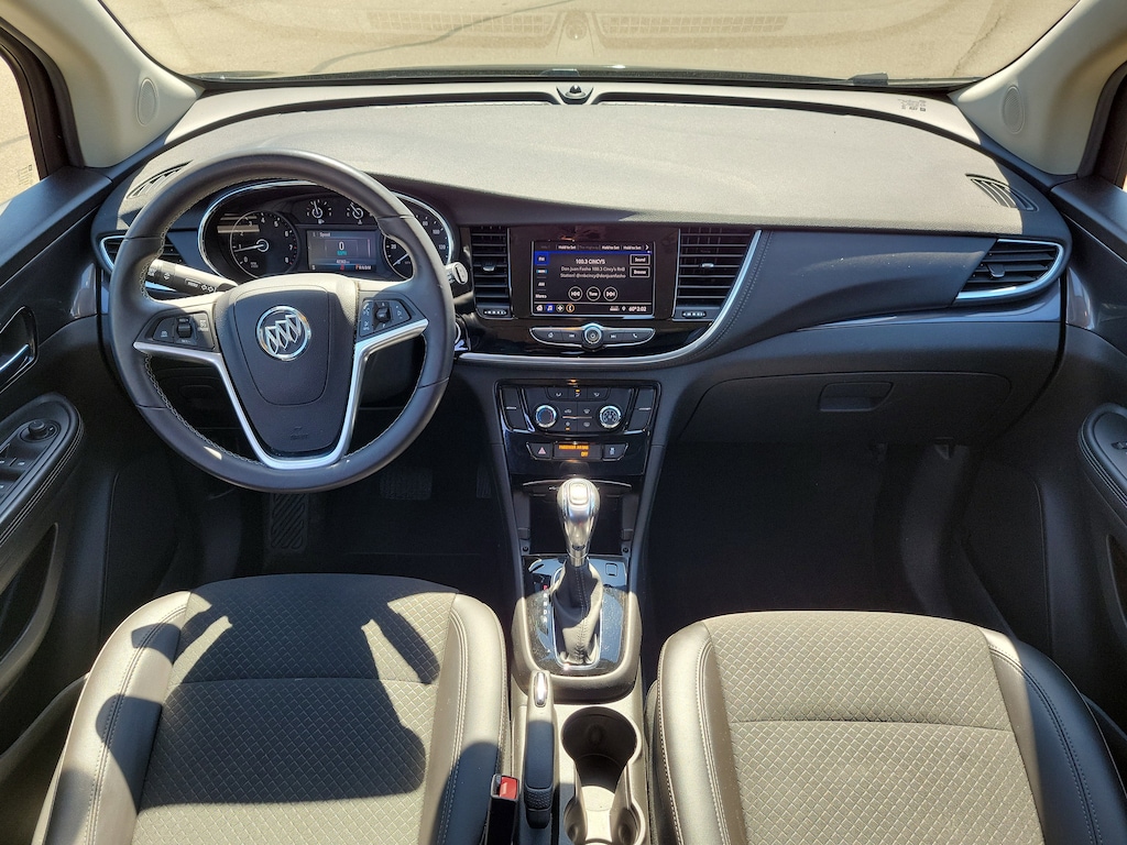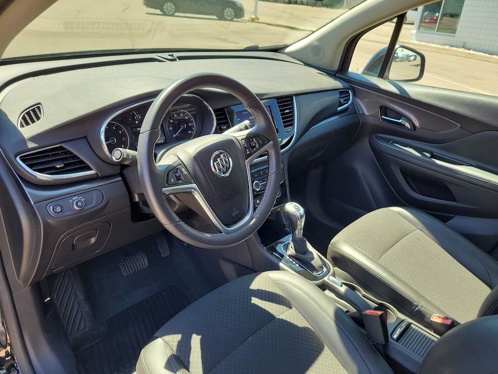 CARFAX One-Owner. Clean CARFAX. Ebony Twilight Metallic 2022 Buick Encore Preferred AWD 6-Speed Automatic Electronic with Overdrive 1.4L ECOTEC Turbo VVT DOHC 4-Cyl SIDI Encore Preferred, 4D Sport Utility, 1.4L ECOTEC Turbo VVT DOHC 4-Cyl SIDI, 6-Speed Automatic Electronic with Overdrive, AWD, Ebony Twilight Metallic, Ebony Artificial Leather, 120-Volt Power Outlet, 4-Wheel Disc Brakes, 6 Speakers, ABS brakes, Air Conditioning, All-Weather Floor Mats, Alloy wheels, Brake assist, Buick Interior Protection Package (LPO), Color-Keyed Carpeted Cargo Mat (LPO), Delay-off headlights, Dual front impact airbags, Dual front side impact airbags, Electronic Stability Control, Emergency communication system: OnStar and Buick connected services capable, Exterior Parking Camera Rear, Front anti-roll bar, Front wheel independent suspension, Fully automatic headlights, Knee airbag, Low tire pressure warning, Occupant sensing airbag, Overhead airbag, Panic alarm, Power driver seat, Preferred Equipment Group 1SB Package, Radio data system, Rear Cross Traffic Alert, Rear side impact airbag, Rear window defroster, Ride & Handling Suspension, Safety Package, Side Blind Zone Alert, Speed control, Speed-sensing steering, Traction control.