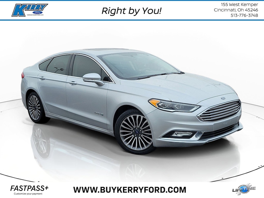 Ingot Silver 2018 Ford Fusion Hybrid Titanium FWD E-CVT Automatic I4 Hybrid Fusion Hybrid Titanium, 4D Sedan, I4 Hybrid, E-CVT Automatic, FWD, Ingot Silver, Ebony Leather, 12 Speakers, AM/FM radio: SiriusXM, Brake assist, CD player, Delay-off headlights, Electronic Stability Control, Equipment Group 700A, Exterior Parking Camera Rear, Four wheel independent suspension, Front fog lights, Fully automatic headlights, Heated front seats, Panic alarm, Power Moonroof, Rear window defroster, Speed-sensing steering, Traction control, Universal Garage Door Opener, Wheels: 18" Machine-Face Aluminum.