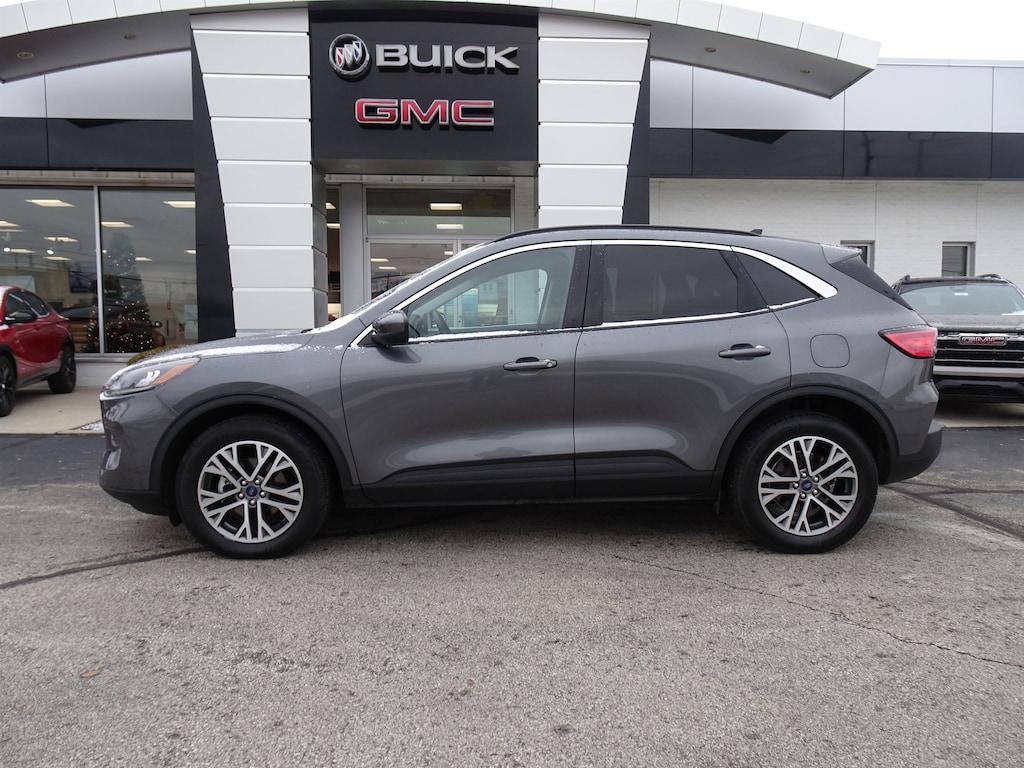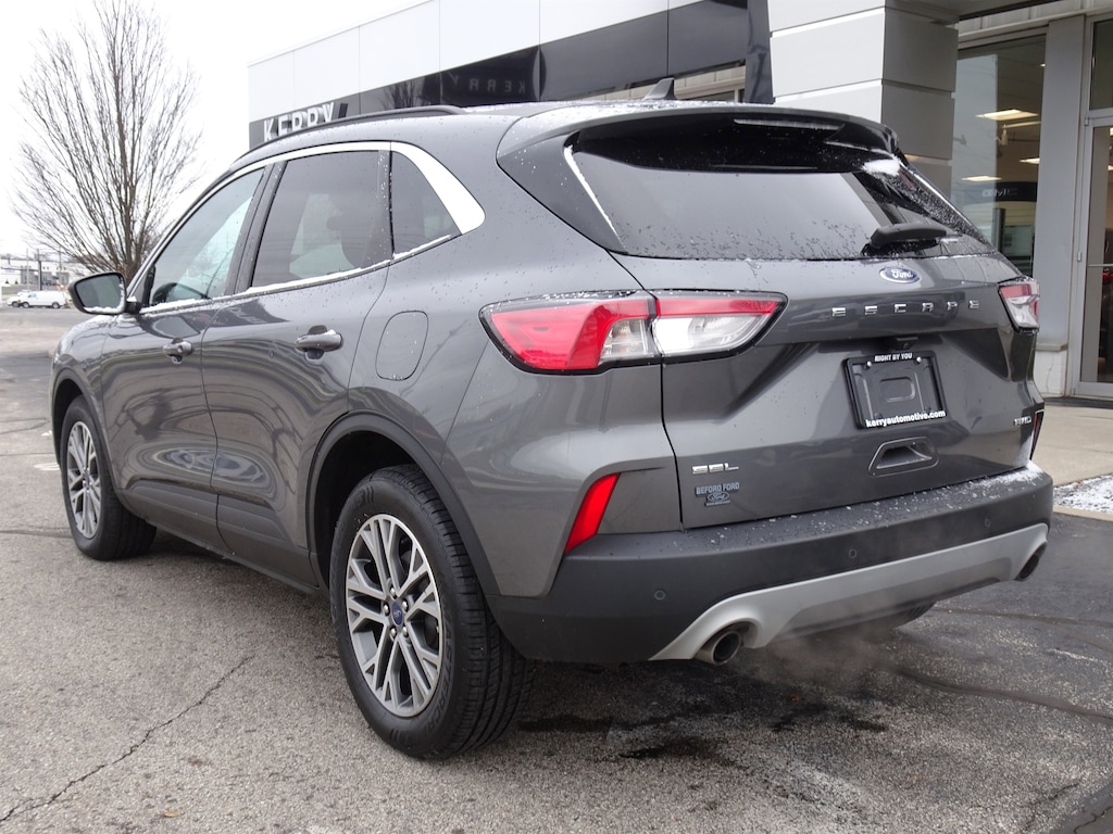 CARFAX One-Owner. Clean CARFAX. Carbonized Gray Metallic 2021 Ford Escape SEL AWD 8-Speed Automatic EcoBoost 2.0L I4 GTDi DOHC Turbocharged VCT Escape SEL, 4D Sport Utility, EcoBoost 2.0L I4 GTDi DOHC Turbocharged VCT, 8-Speed Automatic, AWD, Carbonized Gray Metallic, Ebony Leatherette, 18" Machined-Face Aluminum Wheels, Air Conditioning, Auto High-beam Headlights, Automatic temperature control, Brake assist, Delay-off headlights, Electronic Stability Control, Equipment Group 302A, Exterior Parking Camera Rear, Four wheel independent suspension, Front dual zone A/C, Hands-Free Foot-Activated Liftgate, Instrument Panel w/6.5" Digital Screen, Memory Driver's Seat & Side-View Mirrors, Power Liftgate, Radio: B&O Sound System by Bang & Olufsen, Rear window defroster, Rear window wiper, Speed-sensing steering, Speed-Sensitive Wipers, Technology Package, Traction control, Variably intermittent wipers, Wireless Charging Pad.