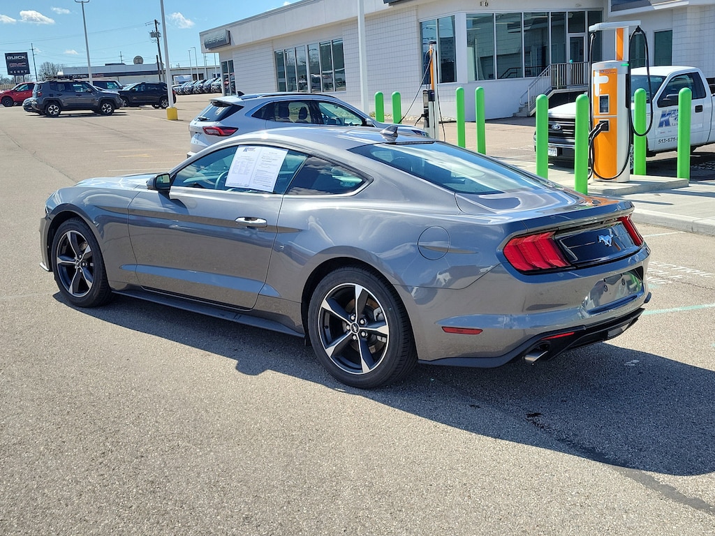 CARFAX One-Owner. Clean CARFAX. Carbonized Gray Metallic 2022 Ford Mustang EcoBoost RWD 6-Speed Manual EcoBoost 2.3L I4 GTDi DOHC Turbocharged VCT Mustang EcoBoost, 2D Coupe, EcoBoost 2.3L I4 GTDi DOHC Turbocharged VCT, 6-Speed Manual, RWD, Carbonized Gray Metallic, Ebony Cloth, Auto High-beam Headlights, Brake assist, Delay-off headlights, Electronic Stability Control, Equipment Group 100A, Exterior Parking Camera Rear, Fully automatic headlights, Panic alarm, Rear Parking Sensors, Speed control, Wheels: 18" x 8" Machined-Face Aluminum.