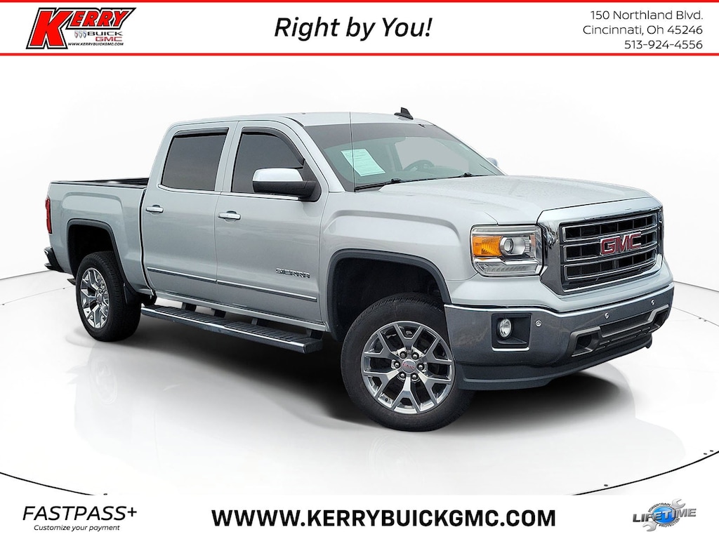 Quicksilver Metallic 2015 GMC Sierra 1500 SLT RWD 6-Speed Automatic Electronic with Overdrive EcoTec3 5.3L V8 Sierra 1500 SLT, 4D Crew Cab, EcoTec3 5.3L V8, 6-Speed Automatic Electronic with Overdrive, RWD, Quicksilver Metallic, Jet Black Leather, 110-Volt AC Power Outlet, 150 Amp Alternator, 20" x 9" Polished Aluminum Wheels, 4.2" Diagonal Color Display Driver Info Center, 6" Rectangular Chromed Tubular Assist Steps, Auto-Dimming Inside Rear-View Mirror, Auxiliary External Transmission Oil Cooler, Chrome Bodyside Moldings, Chrome Door Handles, Chrome Grille Surround, Chrome Mirror Caps, Color-Keyed Carpeting w/Rubberized Vinyl Floor Mats, Deep-Tinted Glass, Driver & Front Passenger Illuminated Vanity Mirrors, Dual-Zone Automatic Climate Control, Electric Rear-Window Defogger, EZ Lift & Lower Tailgate, Front Halogen Fog Lamps, Heavy-Duty Rear Locking Differential, Leather Wrapped Heated Steering Wheel, Leather Wrapped Steering Wheel w/Cruise Controls, LED Cargo Box Lighting, Manual Tilt Wheel Steering Column, OnStar 6 Months Directions & Connections Plan, OnStar w/4G LTE, Power Adjustable Pedals, Power Folding & Adjustable Heated Outside Mirrors, Power Sliding Rear Window, Power Windows w/Driver Express Up & Down, Preferred Equipment Group 4SA, Rear 60/40 Folding Bench Seat (Folds Up), Rear Vision Camera w/Dynamic Guide Lines, Rear Wheelhouse Liners, Remote Keyless Entry, Remote Vehicle Starter System, Single Slot CD/MP3 Player, SLT Crew Cab Value Package, SLT Preferred Package, Steering Wheel Audio Controls, Theft Deterrent System (Unauthorized Entry), Trailering Equipment, Universal Home Remote.