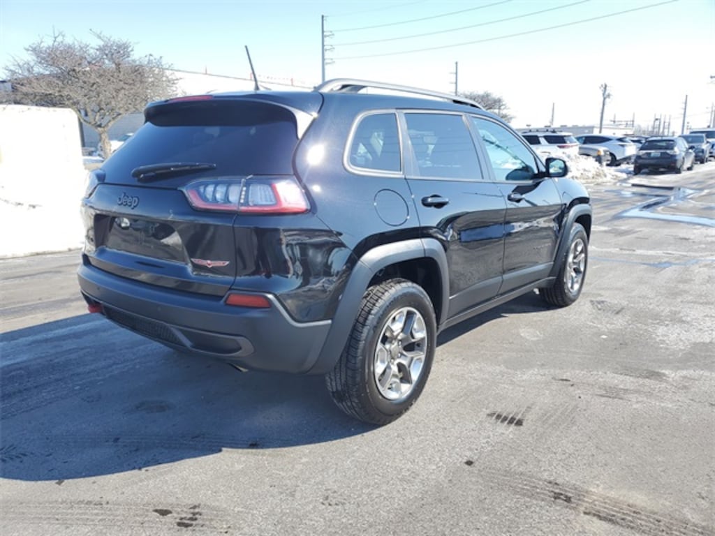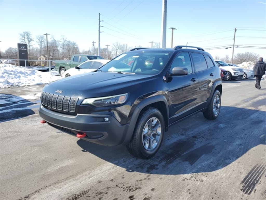 Recent Arrival! Diamond Black Crystal Pearlcoat 2019 Jeep Cherokee Trailhawk 4WD 9-Speed 948TE Automatic 3.2L V6 8.4" Touchscreen Display, Apple CarPlay, Apple CarPlay/Android Auto, Brake assist, Cloth/Premium Vinyl Bucket Seats, Dual front impact airbags, Dual front side impact airbags, Electronic Stability Control, Four wheel independent suspension, Fully automatic headlights, Knee airbag, Off Road Suspension, Overhead airbag, ParkView Rear Back-Up Camera, Rear side impact airbag, Remote keyless entry, Steering wheel mounted audio controls, Traction control.