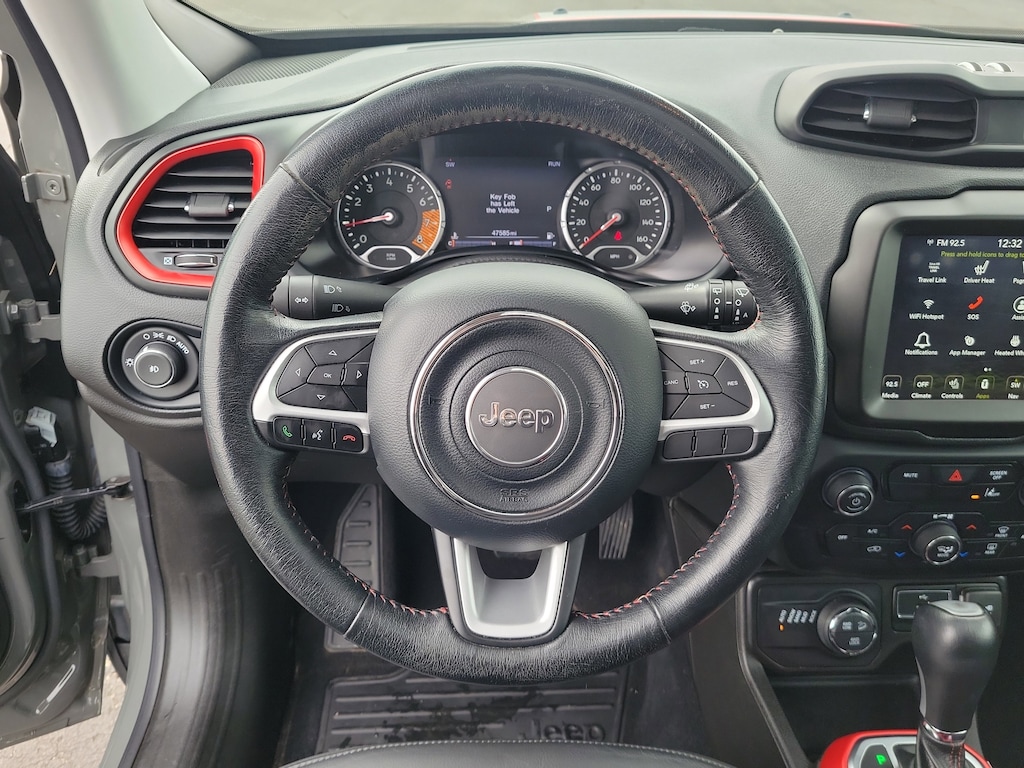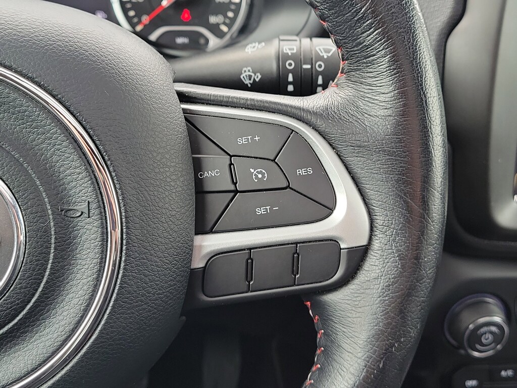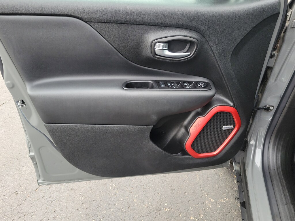Clean CARFAX. Sting-Gray Clearcoat 2021 Jeep Renegade Trailhawk 4WD 9-Speed 948TE Automatic 1.3L I4 Renegade Trailhawk, 4D Sport Utility, 1.3L I4, 9-Speed 948TE Automatic, 4WD, Sting-Gray Clearcoat, Black Leather, 177HP Power Rating, Air Conditioning, Alloy wheels, Automatic temperature control, Brake assist, Delay-off headlights, Dual-Pane Panoramic Power Sunroof, Electronic Stability Control, Four wheel independent suspension, Front dual zone A/C, Front fog lights, Fully automatic headlights, Kenwood Premium Audio System, Navigation System, Normal Duty Suspension, ParkView Rear Back-Up Camera, Quick Order Package 22C, Rear window defroster, Sun & Sound Group (DISC), Traction control.
