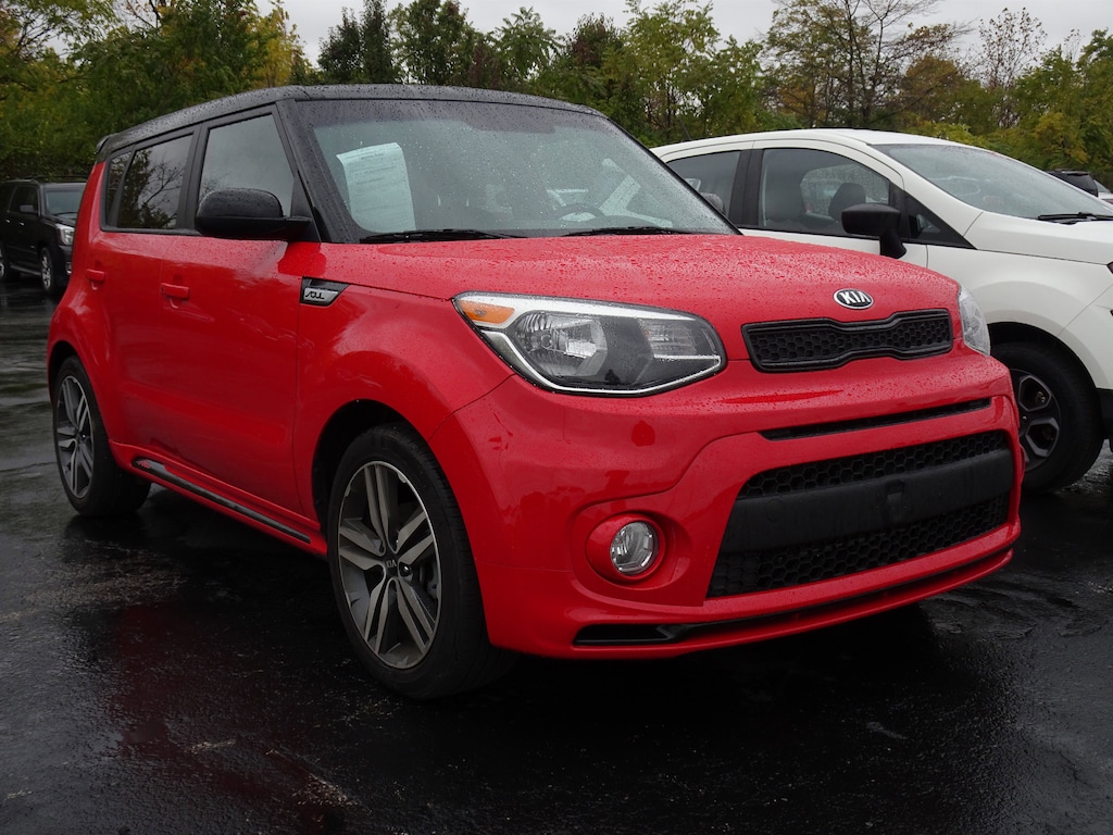 CARFAX One-Owner. Inferno Red w/Black Roof 2019 Kia Soul Plus FWD 6-Speed Automatic with Sportmatic I4 Soul Plus, 4D Hatchback, I4, 6-Speed Automatic with Sportmatic, FWD, Inferno Red w/Black Roof, Black Cloth, 2 USB Center Console Chargers, 6 Speakers, 6-Way Adjustable Driver's Seat, Air Conditioning, Alarm w/Engine Immobilizer, Alloy wheels, AM/FM radio: SiriusXM, Audio Package, Automatic temperature control, Brake assist, Electronic Stability Control, Exterior Body Kit w/Accents, Exterior Parking Camera Rear, Front Bucket Seats, Front fog lights, Fully automatic headlights, Leather-Wrapped Steering Wheel & Shift Knob, Leatherette Instrument Hood/Door Center/Armrests, Piano Black Accents, Power windows, Push Button Start w/Smart Key, Radio: harman/kardon Audio System, Rear Spoiler, Rear window defroster, Rear window wiper, Red Accented Interior, Red Seat Stitching, Remote keyless entry, Satin Chrome Interior Door Handles, Special Edition Red Zone Package, Speed control, Speed-sensing steering, Sport Pedals, Steering wheel mounted audio controls, Traction control, Unique Grille, Variably intermittent wipers, Wheels: 18" Machined/Dark Finish Alloy.