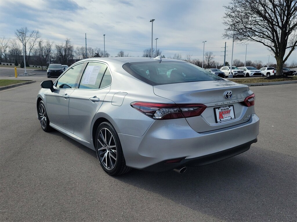 Proudly serving Cincinnati, Florence, Alexandria, Dayton, Hamilton, Dry Ridge, Lexington, Louisville, Nicholasville. Certified. Celestial Silver Metallic 2022 Toyota Camry Hybrid XLE FWD eCVT 2.5L I4 DOHC 16V 6 Speakers, Alloy wheels, AM/FM radio: SiriusXM, Apple CarPlay/Android Auto, Auto High-beam Headlights, Auto-dimming Rear-View mirror, Brake assist, Bumpers: body-color, Delay-off headlights, Electronic Stability Control, Emergency communication system: Safety Connect with 1-year trial, Exterior Parking Camera Rear, Fully automatic headlights, Garage door transmitter: HomeLink, Heated door mirrors, Heated front seats, Knee airbag, Low tire pressure warning, Panic alarm, Passenger door bin, Power door mirrors, Radio data system, Radio: AM/FM/HD Audio Plus, Security system, Speed control, Traction control, Turn signal indicator mirrors, Variably intermittent wipers, Wheels: 8.0J x 18" Machined Finish Alloy.