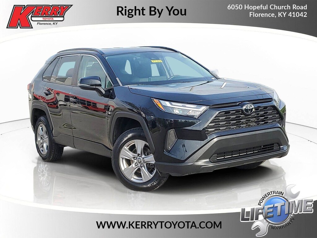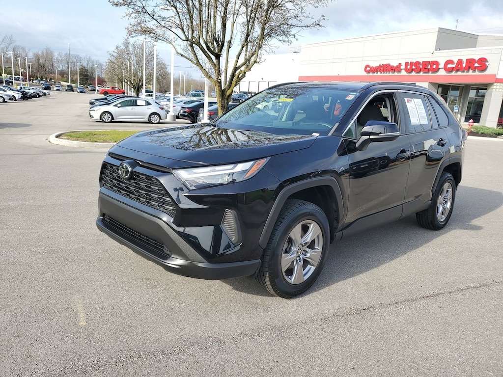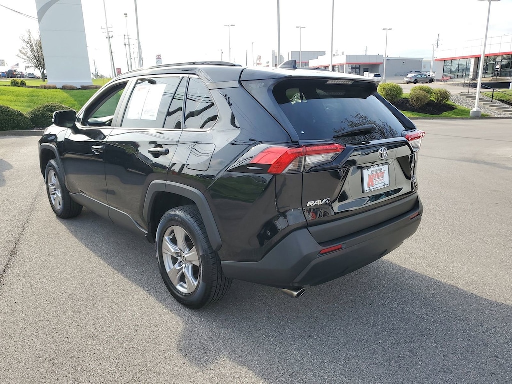 Proudly serving Cincinnati, Florence, Alexandria, Dayton, Hamilton, Dry Ridge, Lexington, Louisville, Nicholasville. Midnight Black Metallic 2022 Toyota RAV4 XLE AWD 8-Speed Automatic 2.5L 4-Cylinder DOHC Dual VVT-i 6 Speakers, Alloy wheels, AM/FM radio: SiriusXM, AM/FM Stereo, Apple CarPlay/Android Auto, Auto High-beam Headlights, Brake assist, Bumpers: body-color, Delay-off headlights, Electronic Stability Control, Emergency communication system: Safety Connect with 1-year trial, Exterior Parking Camera Rear, Fully automatic headlights, Heated door mirrors, Knee airbag, Low tire pressure warning, Panic alarm, Passenger door bin, Power door mirrors, Radio data system, Rear window wiper, Roof rack: rails only, Speed control, Spoiler, Traction control, Turn signal indicator mirrors, Variably intermittent wipers, Wheels: 17" 5-Spoke Silver Alloy.
