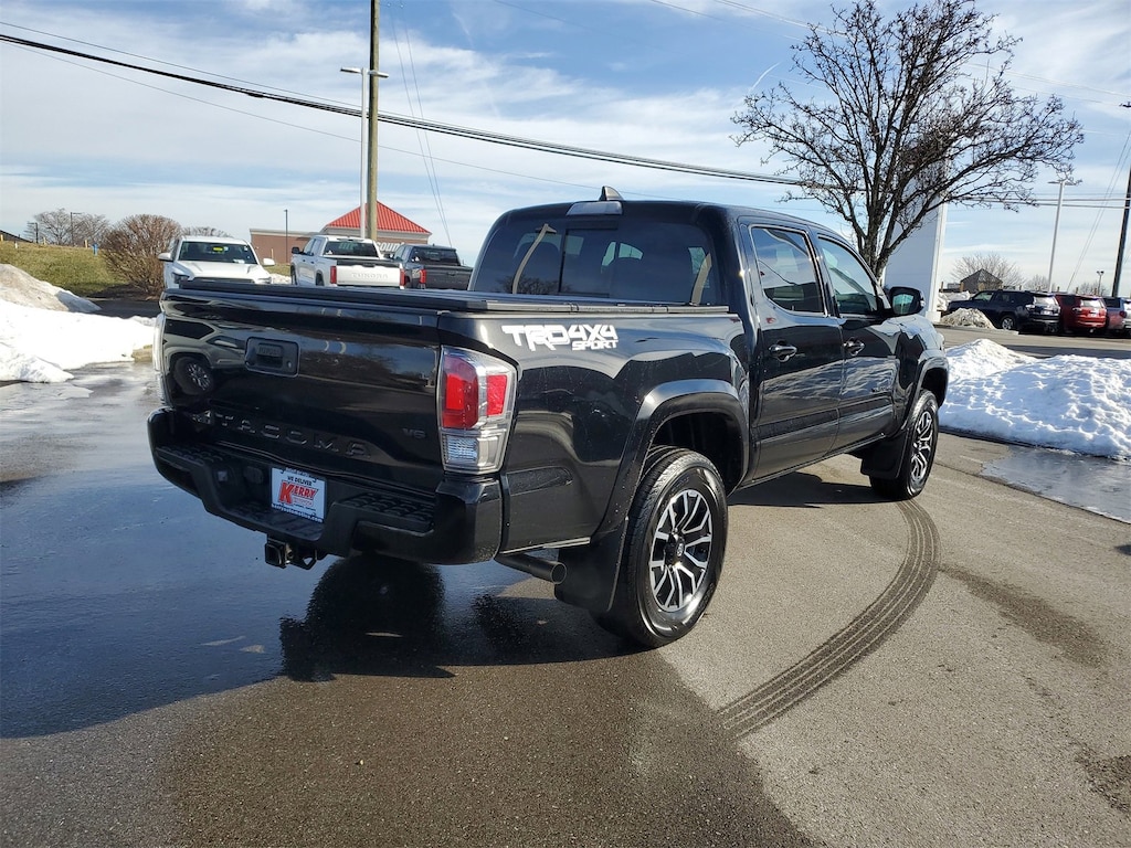 Proudly serving Cincinnati, Florence, Alexandria, Dayton, Hamilton, Dry Ridge, Lexington, Louisville, Nicholasville. Certified. Black 2023 Toyota Tacoma TRD Sport V6 4WD 6-Speed 3.5L V6 17" Machined Alloy Wheels, 6 Speakers, ABS brakes, Alloy wheels, AM/FM radio: SiriusXM, Apple CarPlay/Android Auto, Auto High-beam Headlights, Auto-dimming Rear-View mirror, Auto-Dimming Rearview Mirror w/HomeLink, Bed Light (TMS), Blackout Emblem Overlays (TMS), Brake assist, Bumpers: body-color, Color-Keyed Overfenders, Electronic Stability Control, Emergency communication system: Safety Connect (1-year trial), Exterior Parking Camera Rear, Front dual zone A/C, Garage door transmitter: HomeLink, Heated door mirrors, Illuminated entry, Knee airbag, Leather Shift Knob, Low tire pressure warning, Mudguards (TMS), Panic alarm, Passenger door bin, Power door mirrors, Power Sliding Rear Window w/Privacy Glass, Radio: Audio, Rear step bumper, Remote keyless entry, Security system, Soft Tonneau Cover (TMS), Speed control, Traction control, TRD Shift Knob (TMS), Turn signal indicator mirrors, Variably intermittent wipers.