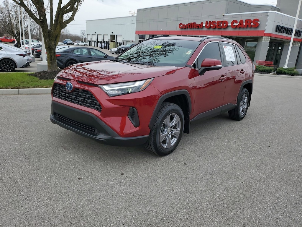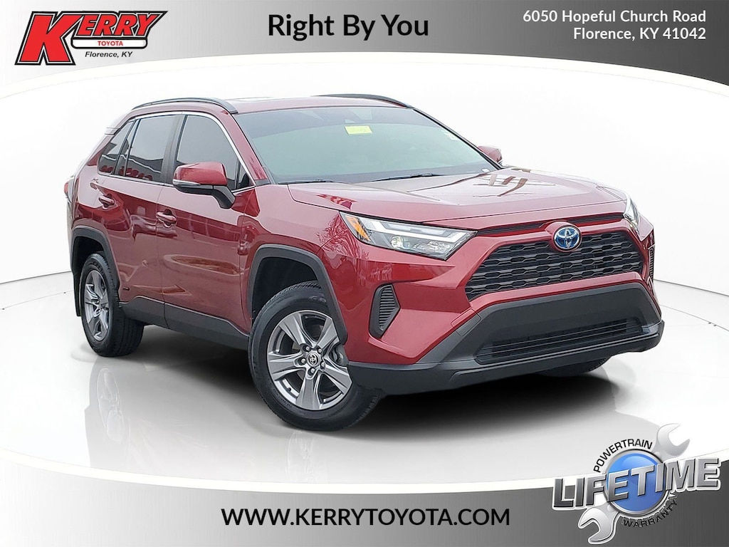 Proudly serving Cincinnati, Florence, Alexandria, Dayton, Hamilton, Dry Ridge, Lexington, Louisville, Nicholasville. Certified. Ruby Flare Pearl 2024 Toyota RAV4 Hybrid XLE AWD eCVT 2.5L 4-Cylinder 6 Speakers, Alloy wheels, AM/FM radio: SiriusXM, Auto High-beam Headlights, Blackout Emblem Overlays (TMS), Brake assist, Bumpers: body-color, Convenience Package, Delay-off headlights, Electronic Stability Control, Emergency communication system: Safety Connect (1-year trial), Exterior Parking Camera Rear, Front Door Smart Key System w/Push Button Start, Front Seat Heating, Fully automatic headlights, Heated 3-Spoke Leather Steering Wheel, Heated door mirrors, Knee airbag, Low tire pressure warning, Mudguards (TMS), Panic alarm, Passenger door bin, Power door mirrors, Radio data system, Radio: AM/FM/XM Audio System, Rear window wiper, Speed control, Spoiler, Tilt & Slide Moon Roof, Traction control, Turn signal indicator mirrors, Variably intermittent wipers, Weather Package, Wheels: 17" x 7.0J Silver Aluminum Alloy.