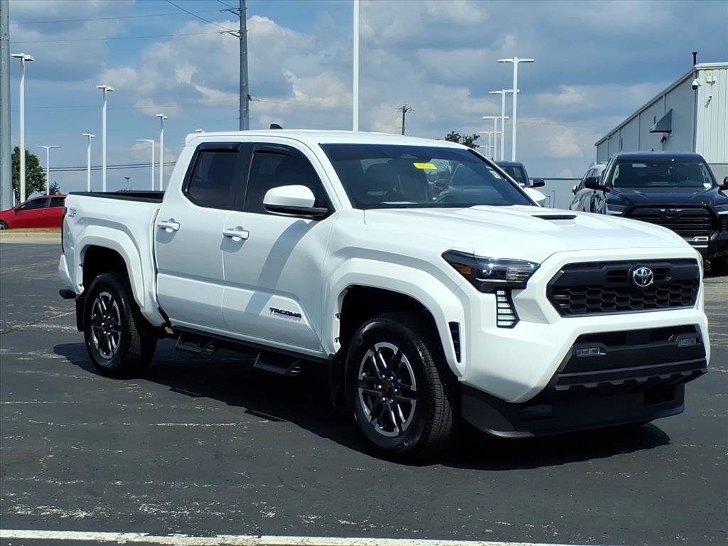 Proudly serving Cincinnati, Florence, Alexandria, Dayton, Hamilton, Dry Ridge, Lexington, Louisville, Nicholasville. Ice Cap 2025 Toyota Tacoma TRD Sport 4WD 8-Speed Automatic 2.4L 4-Cylinder 6 Speakers, ABS brakes, Alloy wheels, AM/FM radio: SiriusXM, Apple CarPlay/Android Auto, Auto High-beam Headlights, Auto-dimming Rear-View mirror, Bed Step (TMS), Black Chrome Exhaust Tip (TMS), Brake assist, Bumpers: body-color, Door Edge Guard (TMS), Electronic Stability Control, Emergency communication system: Safety Connect (1-year trial), Exterior Parking Camera Rear, Front fog lights, Fully automatic headlights, Heated door mirrors, Illuminated entry, Illuminated Front Emblem Bright Chrome (TMS), Knee airbag, Leather Shift Knob, Leather steering wheel, Low tire pressure warning, Panic alarm, Passenger door bin, Power door mirrors, Predator Step (TMS), Radio: 8" Toyota Audio Multimedia, Rear step bumper, Remote keyless entry, Security system, Speed control, Spray-On Bed Liner (TMS), Traction control, Turn signal indicator mirrors, Variably intermittent wipers, Wheels: 18" TRD Sport Alloy.